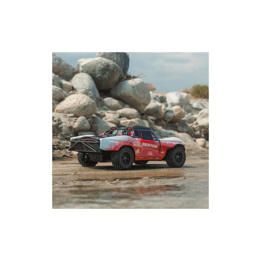 Az Arrma Senton RC autómodell meglep majd szívósságával és tartósságával. Masszív kompozit vázzal rendelkezik, oldalsó Nerf megerősítésekkel és megemelt oldalfalakkal a szennyeződések bejutása ellen. Az alacsony alváz lehetővé teszi a nagy sebességű kanyarvételt. A modell alkalmas kemény felületekre, kavicsra és alacsony fűre. A használt fém fogaskerekek kellően tartósak a váltakozó áramú meghajtáshoz. A teljesítmény az első és hátsó differenciálmű segítségével jut el az egyes kerekekhez. A maximális tapadást a bevált dBoots Fortress SC gumiabroncsok biztosítják. A Spektrum SLT adó biztonságos, meghibásodás nélküli működést biztosít, a gondtalan vezetés érdekében a modell vízálló* alkatrészeket használ - egy Spektrum 2 az 1-ben 85A vevővel ellátott szabályozót és egy nagy nyomatékú, fém fogaskerekes Spektrum S662 szervovezérlést.