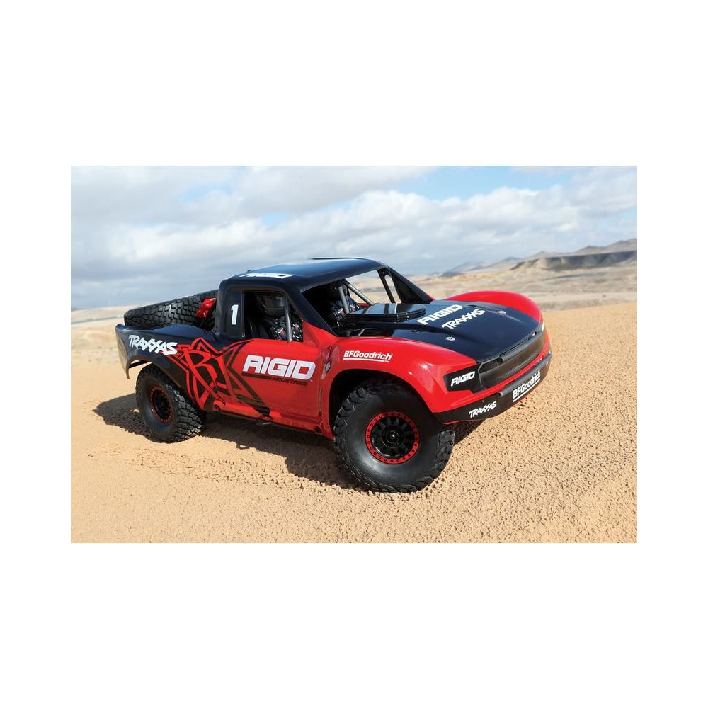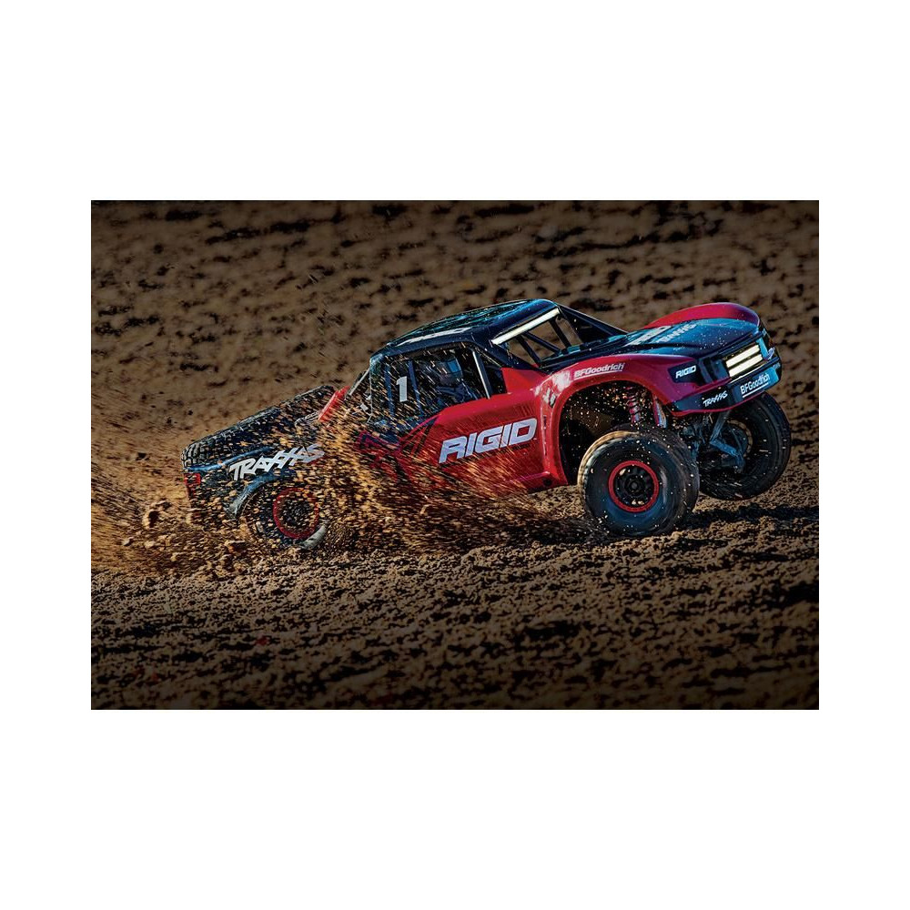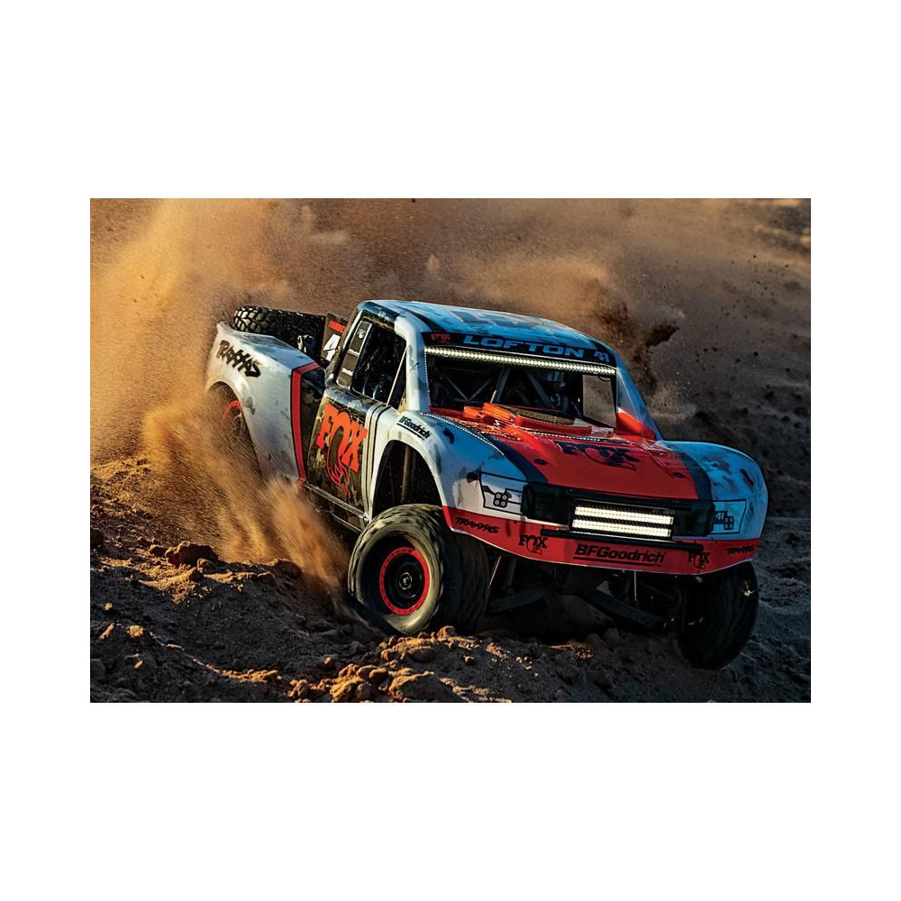 A megismételhetetlen vezetési élmény érdekében a Traxxas megalkotta a Traxxas Unlimited Desert Racer 1:8-as modelljét az új, innovatív Pro-Scale™ alvázzal, amely realisztikus kidolgozást kínál számos részlettel, extrém teljesítménnyel és sebességgel kombinálva. Hűen adja vissza a legmagasabb osztályú valódi Trophy Truckok megjelenését egy új, 4x4-es meghajtású alvázon. A hátsó tengely összekapcsolt szerkezete hiteles vezetési dinamikát biztosít sivatagi versenyeken vagy nehezebb terepen.