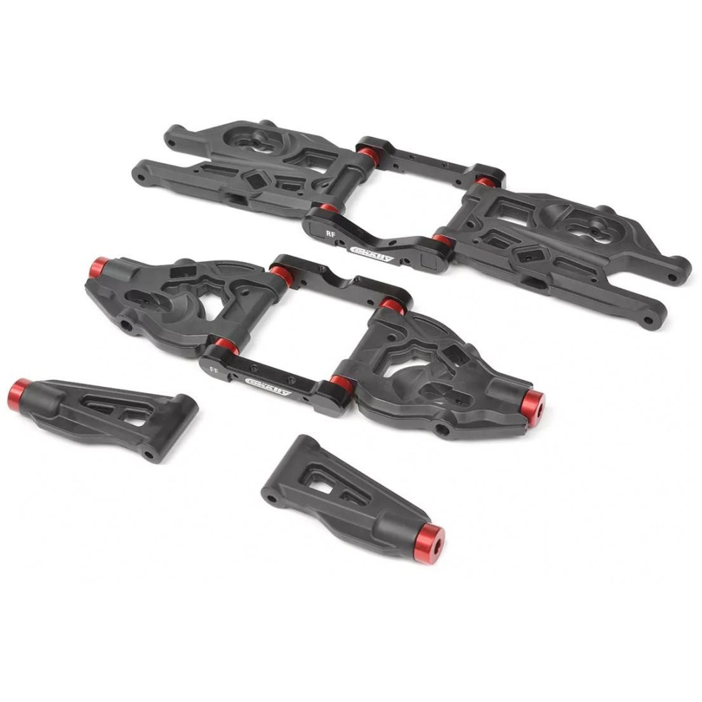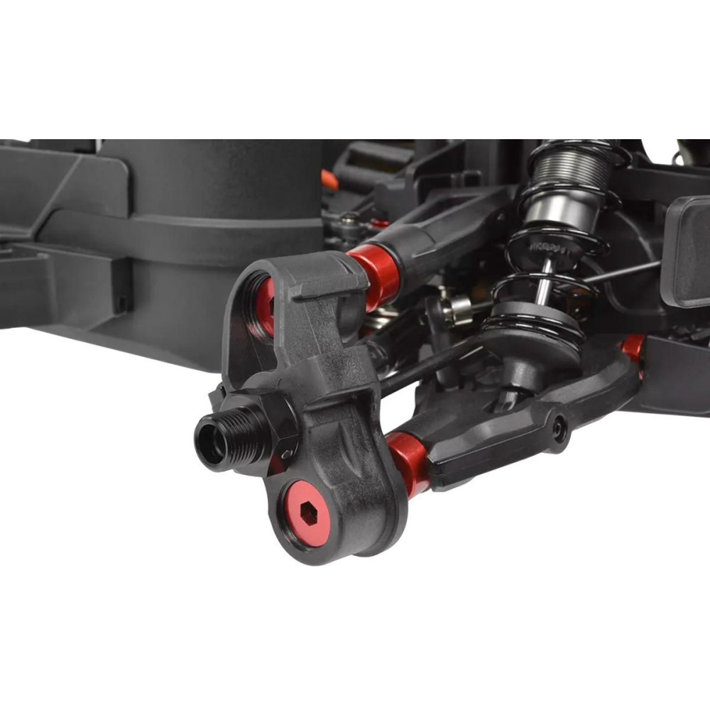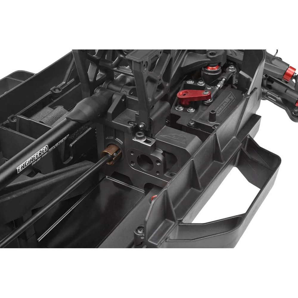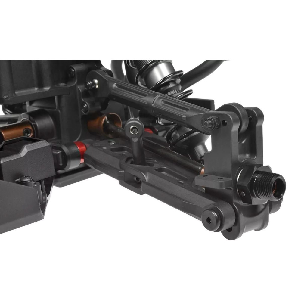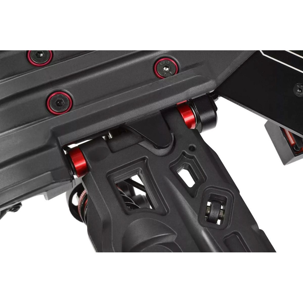 A SHIROI modell magját egy CNC mart 3 mm-es alumínium alvázplatform alkotja, amelyet rugóstagok és magas kompozit oldalvédők erősítettek meg. Ez a merev váz könnyedén kezeli a nagy sebességű vezetést, a nehéz terepet és a nagy igénybevételt jelentő ütéseket. A CNC mart fogaskerekekkel, három olajjal töltött differenciálművel és tartós CVD hajtótengelyekkel ellátott golyóálló acél hajtáslánc maximális hatékonyságot és megbízhatóságot biztosít mind a 4S, mind a 6S LiPo tápellátás esetén.