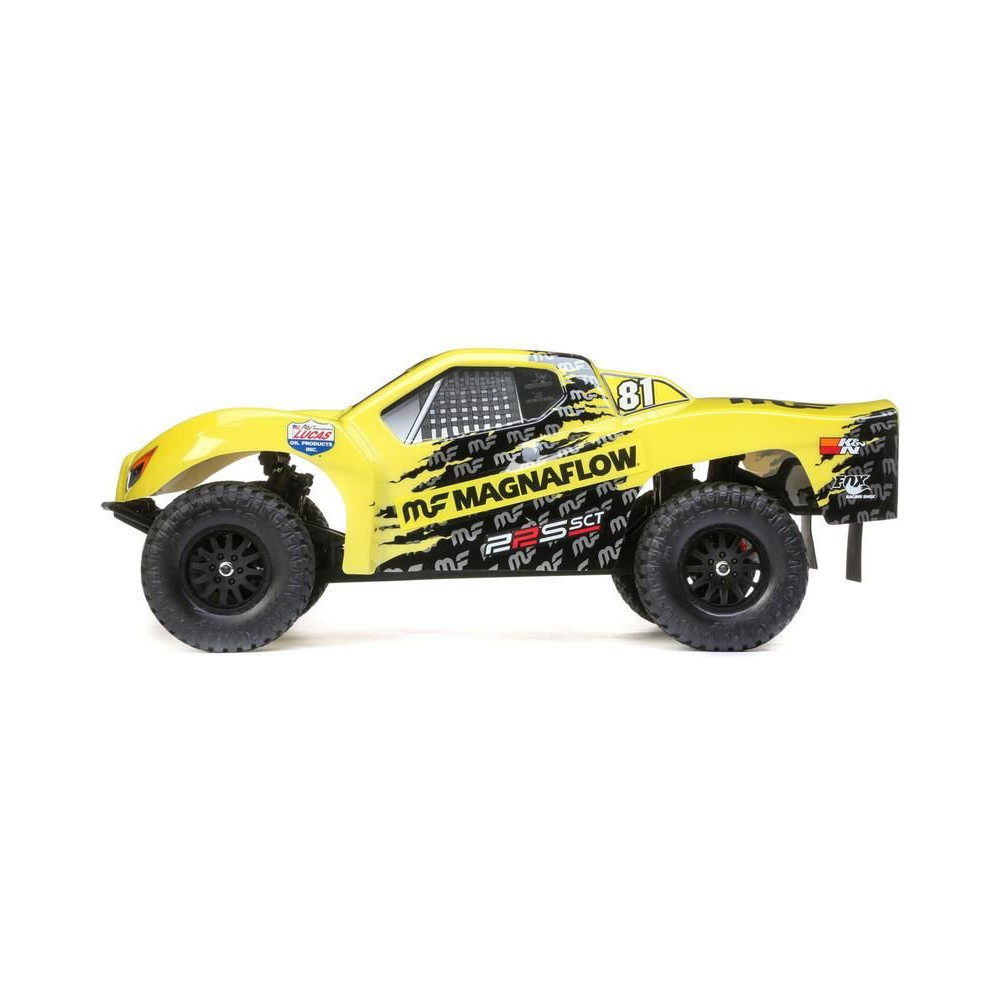 A készletben található a kész összeszerelt Losi 22S 2WD SCT RC autómodell Magna Flow karosszériával, távirányító STX200 és útmutató.