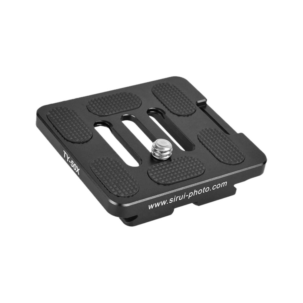 A Sirui TY-50X gyorskioldó lemez három lyukkal rendelkezik, amelyek lehetővé teszik a fényképezőgép középre történő rögzítését. Az 1/4"-os menetes csavar egy érmével vagy csavarkulccsal húzható meg, amely a csomagban található. Egy külön lyuk van a csuklópánt vagy heveder rögzítéséhez a lemezhez.