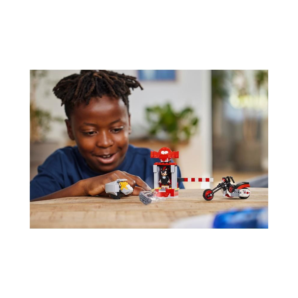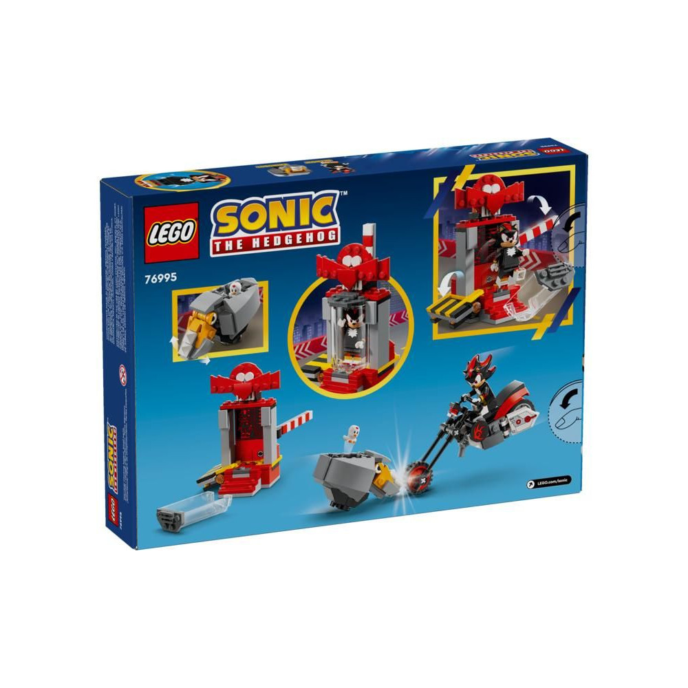 A LEGO® Sonic the Hedgehog™ sorozatból származó Shadow the Hedgehog and his Escape (76995) készlettel a 8 éves és idősebb gyerekek órákon át élvezhetik az akciódús játékot. Akárcsak a népszerű videojáték szereplői, a gyerekek is elképesztő kalandok elé nézhetnek. Élvezni fogják a modell megépítését és Shadow menekülését a laboratórium sztáziskamrájából. A hős motorra pattan, elszáguld egy lezuhanó barikád mellett, elpusztítja Badnik RhinoBotot - ezzel kiszabadítva Clucky-t - és megszökik.