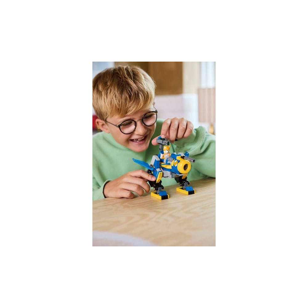 - Újjáépíthető robot – Ez a LEGO® készlet akciódús mókát indít Tails robotruhájával, amely kihajtja a lábait és előre fordul, hogy járó módból repülő módba alakuljon át.