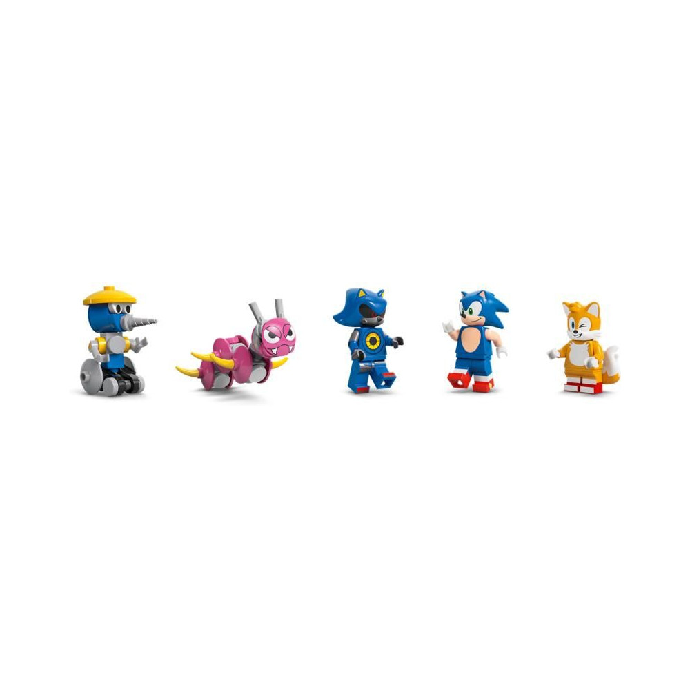- Az akció bent játszódik - Tartalmaz egy LEGO® Sonic minifigurát, Tailsea Metal Sonic, Burrobot és Caterkiller figurákat, valamint egy járművet vezetőfülkével, tárolóhellyel és rámpával az ATV modellhez.