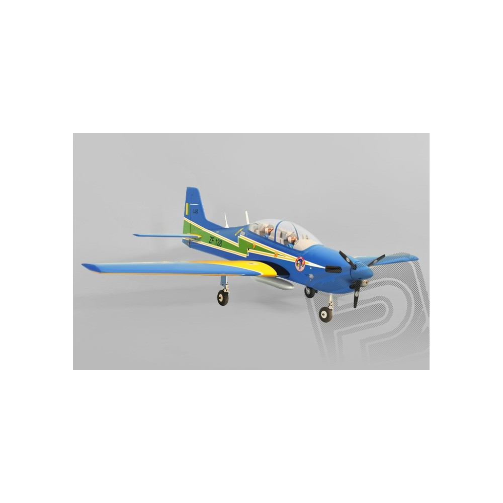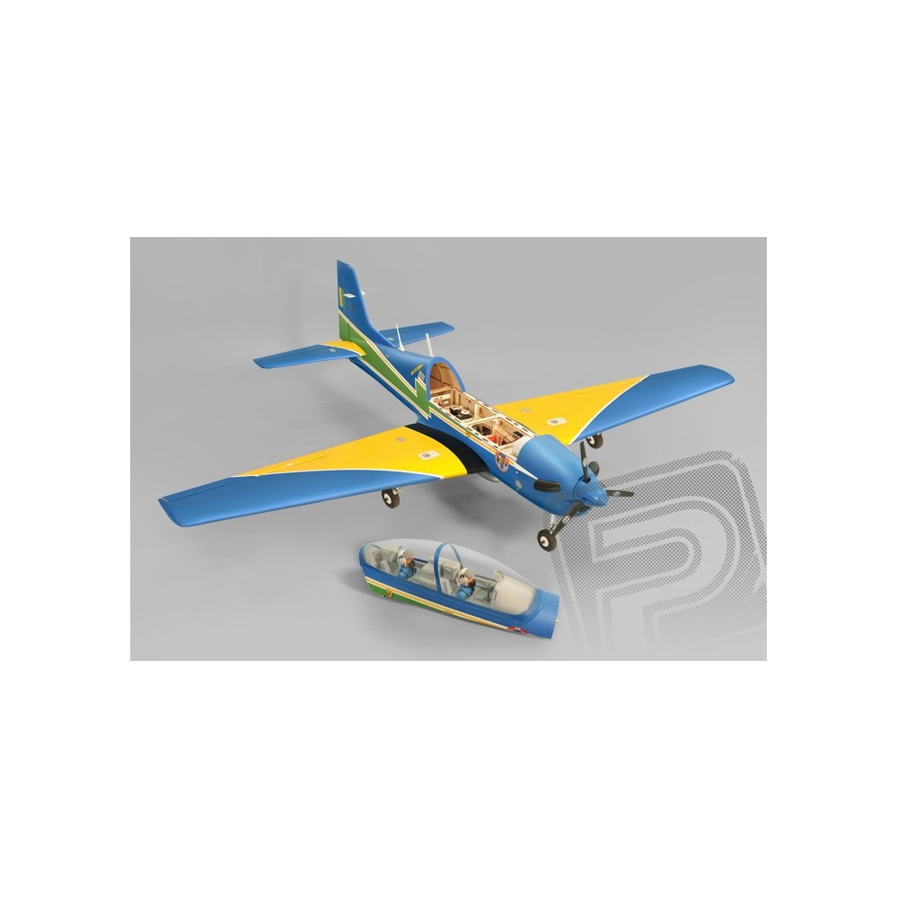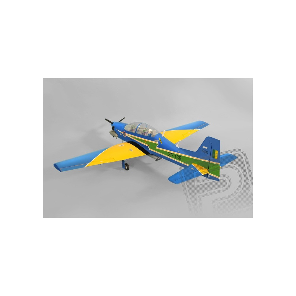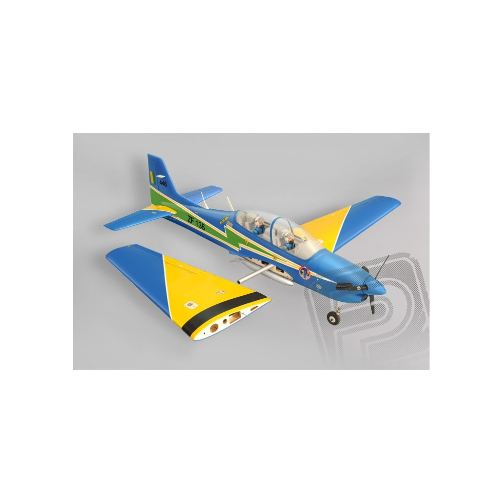 A Tucano/Toucan katonai kiképzőgép az egyik legsikeresebb repülőgép, amely a brazil EMBRAER vállalat tervezőirodájából származik. Számos hazai gyártású gép mellett a brit Shorts Brothers cég Tucanája is körberepüli a világot, és kezdő pilótákat képez. A Phoenix készlet a brazil légierő "Esquadrilha da Fumaca" ("Füstszázad") műrepülő csoportjának színeiben pompázó gépet ábrázolja. 10 köbcentis kétütemű vagy 12-15 köbcentis négyütemű motorokhoz készült a brazil-brit kiképzőgép félig méretarányos modellje. A törzs klasszikus, teljesen balsából készült, a pilótapár által elfoglalt pilótafülkét takaró nagyméretű "üvegházzal". A motorháztető levehető üvegszálas. A szimmetrikus profilú, kétrészes szárny (duralumínium csőcsatlakozás) szintén klasszikus felépítésű, torziós dobozzal; a törzshöz poliamid csavarokkal van rögzítve. A szárnyszárnyakat és a fékszárnyakat 2 pár szervó vezérli. A farokfelületek klasszikus, teljesen balsából készültek. Az egész modell Oracover vasalható fóliával van bevonva. A készlet a következőket tartalmazza: Oracover bevonatos törzs, szárny és farokfelületek, fújt üvegszálas motorburkolat, motorágy, kúp, teljes kis tartozékkészlet, mechanikus behúzható futómű, kerekek, műrepülő üzemanyagtartály, matricás ív és részletes, képes útmutató.