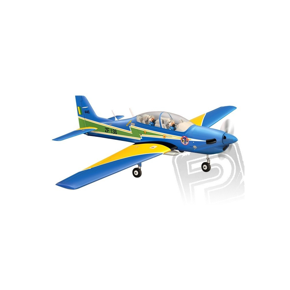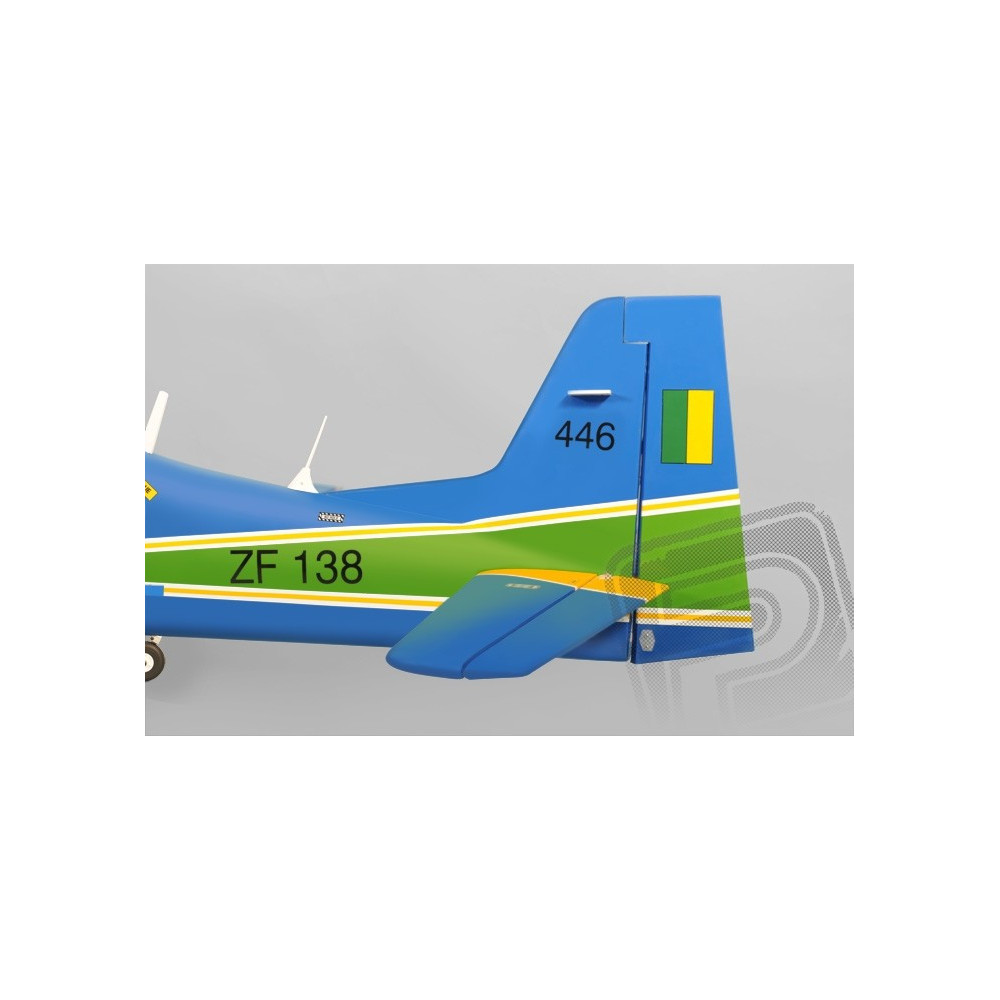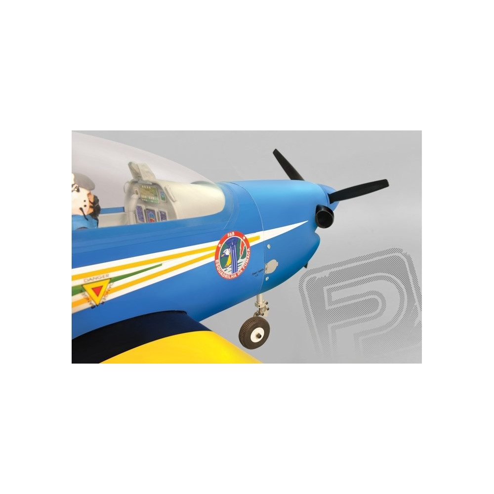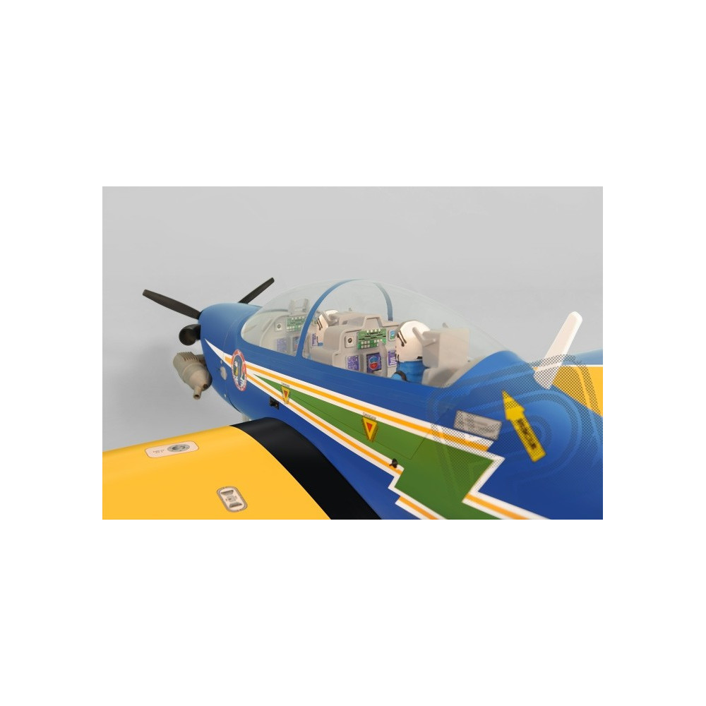 A Tucano/Toucan katonai kiképzőgép az egyik legsikeresebb repülőgép, amely a brazil EMBRAER vállalat tervezőirodájából származik. Számos hazai gyártású gép mellett a brit Shorts Brothers cég Tucanája is körberepüli a világot, és kezdő pilótákat képez. A Phoenix készlet a brazil légierő "Esquadrilha da Fumaca" ("Füstszázad") műrepülő csoportjának színeiben pompázó gépet ábrázolja. 10 köbcentis kétütemű vagy 12-15 köbcentis négyütemű motorokhoz készült a brazil-brit kiképzőgép félig méretarányos modellje. A törzs klasszikus, teljesen balsából készült, a pilótapár által elfoglalt pilótafülkét takaró nagyméretű "üvegházzal". A motorháztető levehető üvegszálas. A szimmetrikus profilú, kétrészes szárny (duralumínium csőcsatlakozás) szintén klasszikus felépítésű, torziós dobozzal; a törzshöz poliamid csavarokkal van rögzítve. A szárnyszárnyakat és a fékszárnyakat 2 pár szervó vezérli. A farokfelületek klasszikus, teljesen balsából készültek. Az egész modell Oracover vasalható fóliával van bevonva. A készlet a következőket tartalmazza: Oracover bevonatos törzs, szárny és farokfelületek, fújt üvegszálas motorburkolat, motorágy, kúp, teljes kis tartozékkészlet, mechanikus behúzható futómű, kerekek, műrepülő üzemanyagtartály, matricás ív és részletes, képes útmutató.