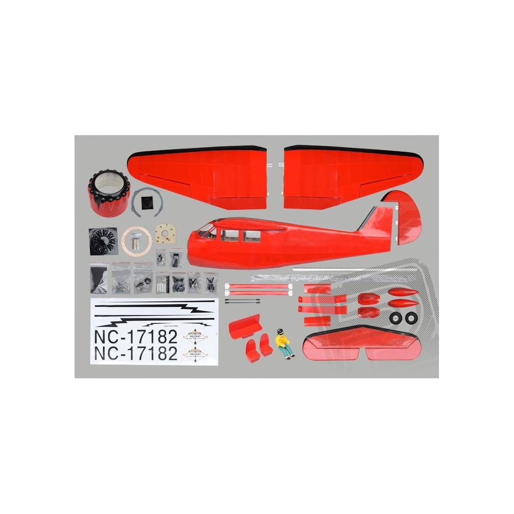 készlet a következőket tartalmazza: épített és bevonatos törzs, fújt üvegszálas motorburkolat, kész szárnyvégek, a radiálmotor műanyag makettje, üvegszálas kerékborítások, épített és bevonatos szárnyak és farokfelületek, duralumínium futómű, tartozékkészlet, kerekek és képes útmutató.