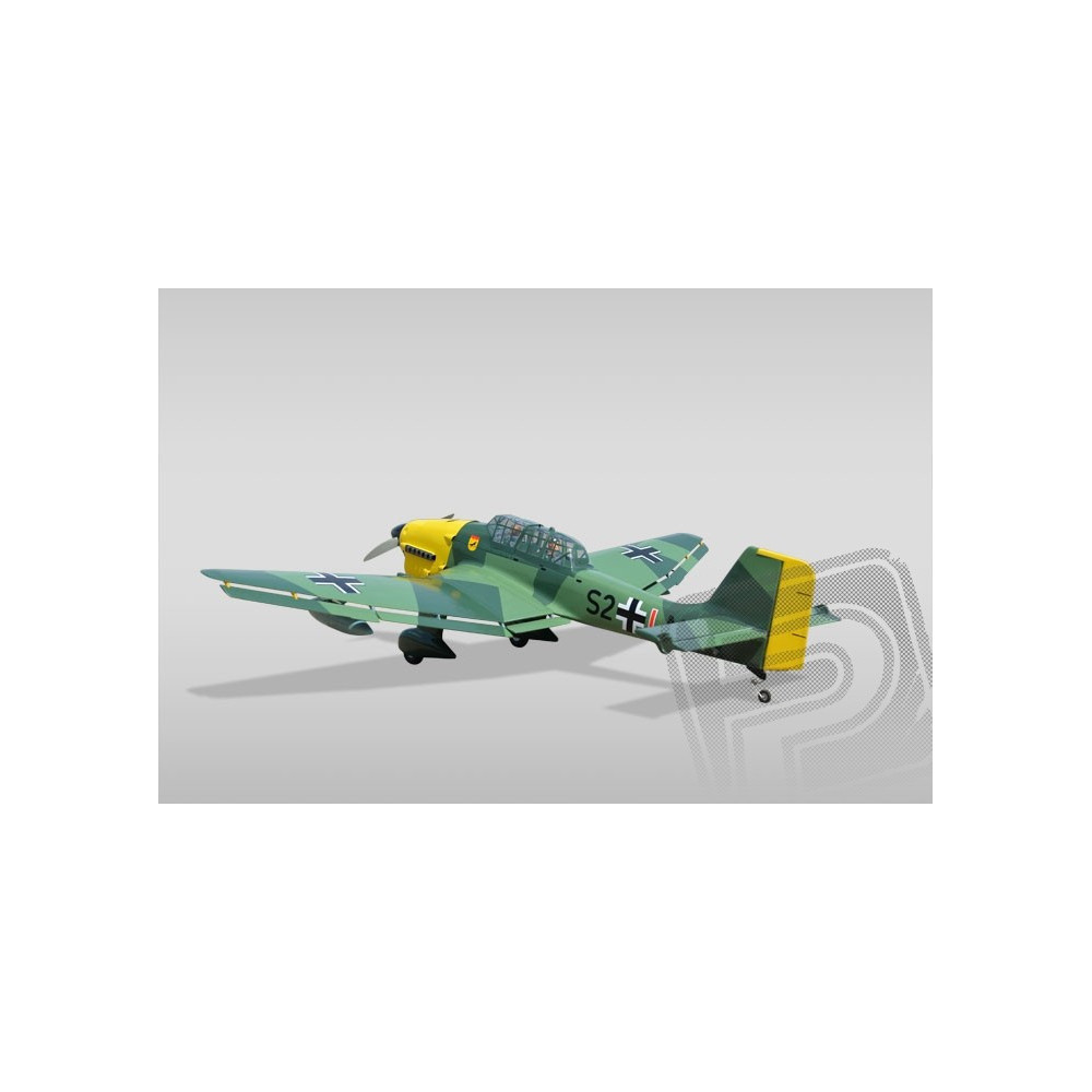 Félkész német zuhanóbombázó klasszikus, teljesen balsából készült szerkezet, meghajtására 20 cm3-es kétütemű motor, 23-30 cm3-es négyütemű motor, 20 cm3-es benzinmotor vagy AXI 4130-as osztályú villanymotor közepesen fejlett pilóták számára