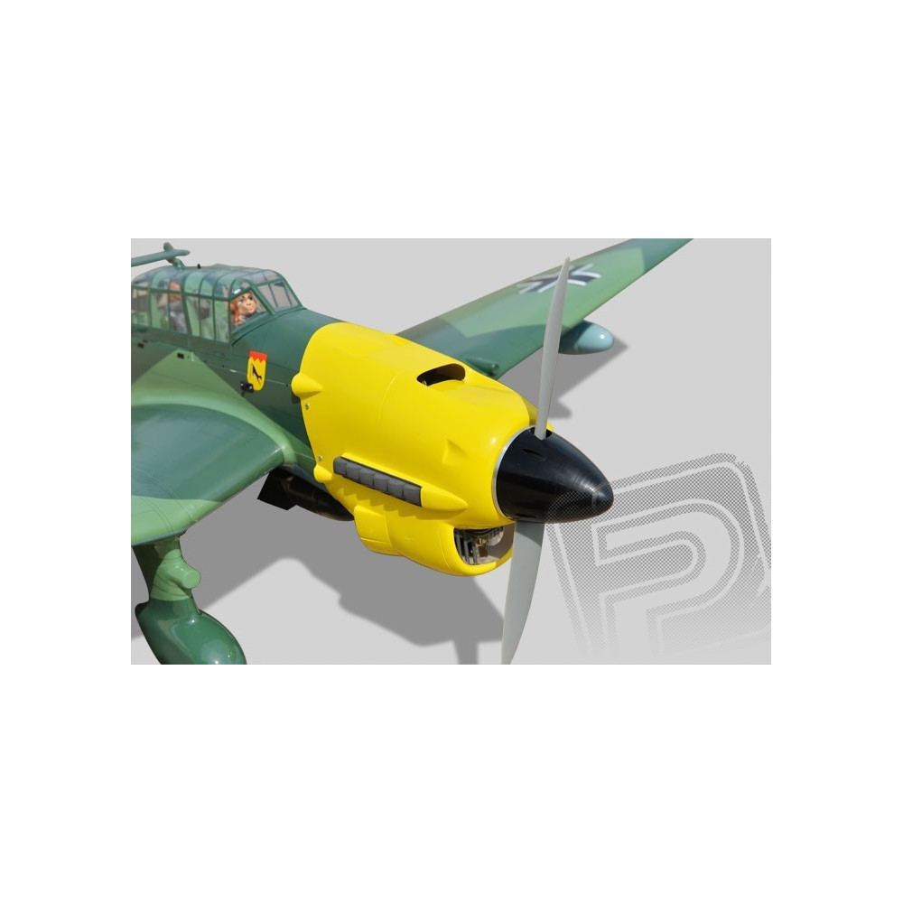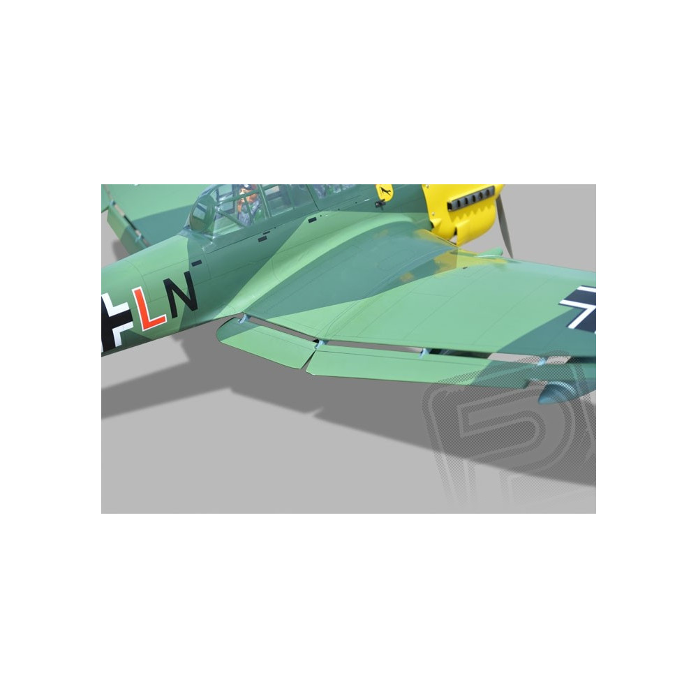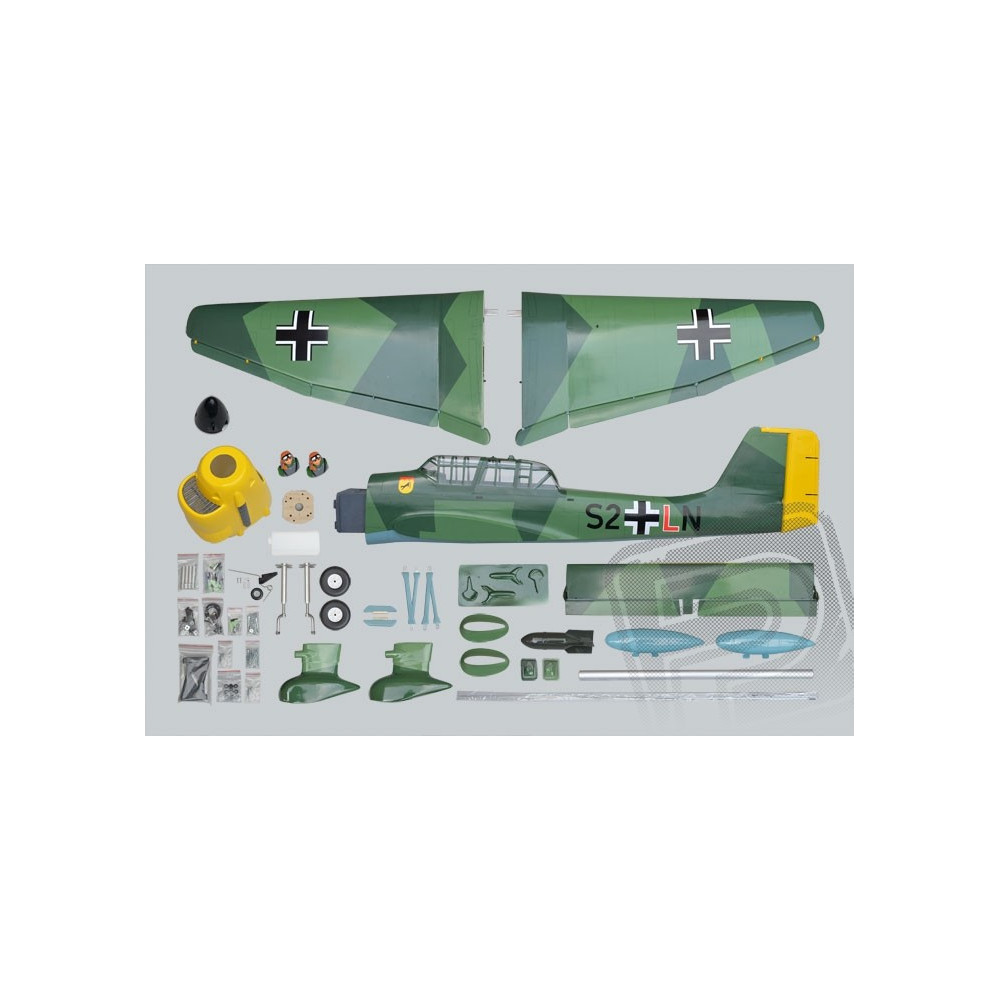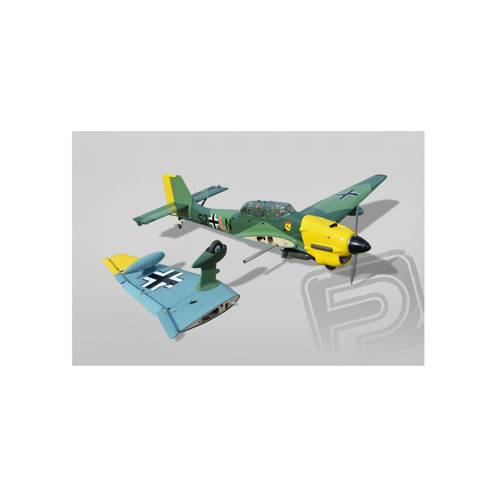 Német zuhanóbombázó félmakettje 1910mm kétütemű 20ccm, négyütemű 25-30ccm vagy benzinmotorokhoz 20-30ccm. Szerkezeti törzs és orrfelületek matt vasalható fólia borítással. Vezérelt szárnyszárnyak, fékszárnyak, kormánylapát, magassági kormány.