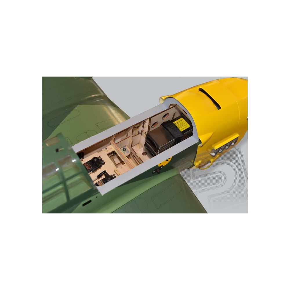 törzs klasszikus balsából és könnyű rétegelt lemezből készült, levehető üvegszálas motorháztetővel, jellegzetes "állal". A belsőégésű motor egy állítható műanyag ágyra van szerelve, amely egy rétegelt lemezből készült motor válaszfalhoz van rögzítve, amely a törzs tömör dobozos "magjának" része. Ez helyet biztosít az üzemanyagtartály számára is. A készletben egy további motor válaszfal távtartókkal együtt szerepel a hátsó szerelvényben lévő villanymotor beépítéséhez. A pilótafülke makettfelszereltségű; a felső törzs eltávolítható a fedélzeti elektronikához való könnyű hozzáférés vagy a meghajtó akkumulátorok behelyezése érdekében. A kormány-, magassági kormány- és gázkar szervók a szárny feletti rekeszben vannak felszerelve.