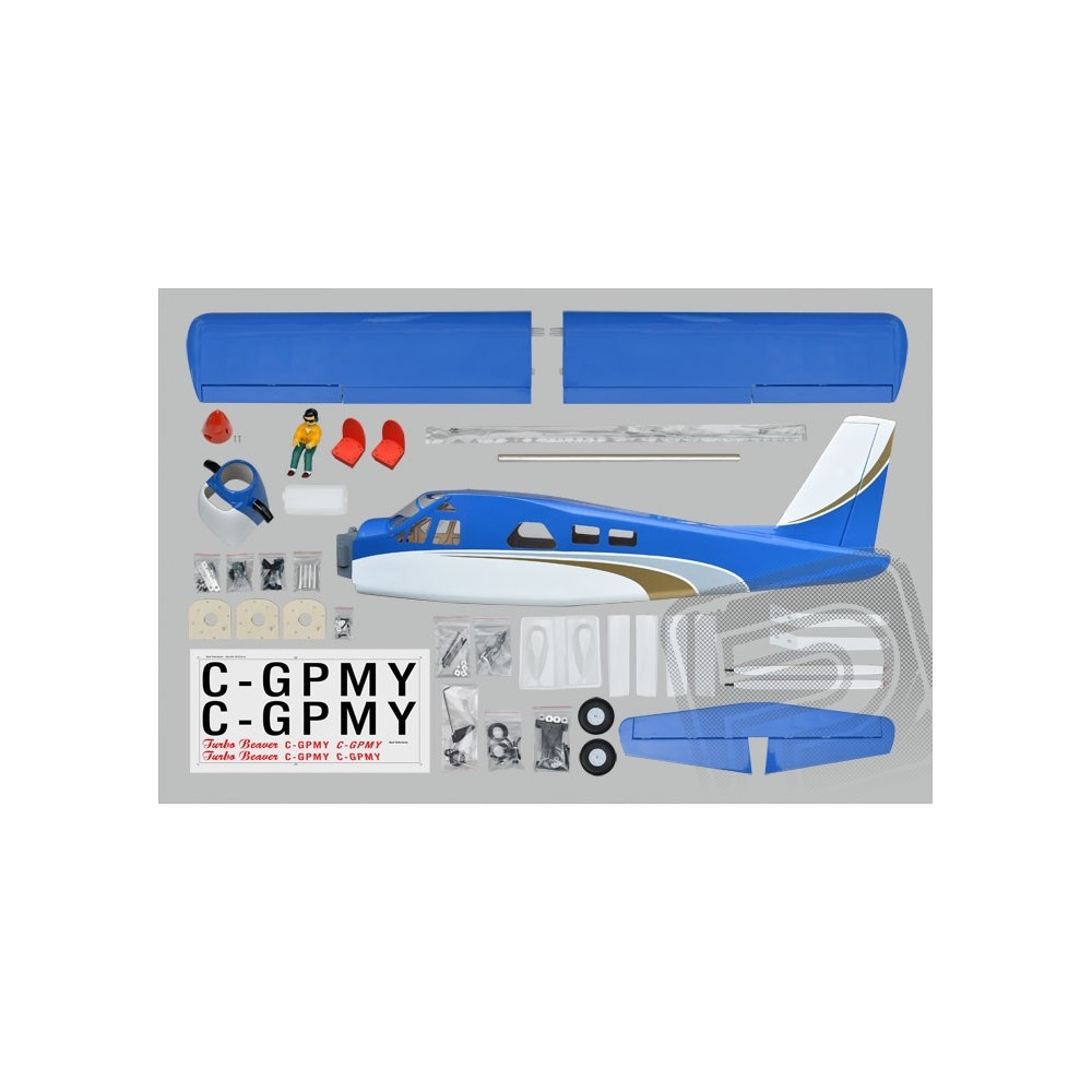 A készlet tartalmazza: épített és bevonatos törzs, fújt üvegszálas motorburkolat, kész szárnyvégek, épített és bevonatos szárnyak és farokfelületek, duralumin futómű, tartozékkészlet, kerekek, matricák és képes útmutató.