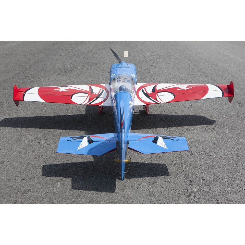 Német műrepülőgép ARF készlet. Szárnyfesztáv 208cm, kétütemű benzinmotorokhoz 50ccm. A készlet tartalmaz egy átalakító készletet elektromos motoros meghajtáshoz.