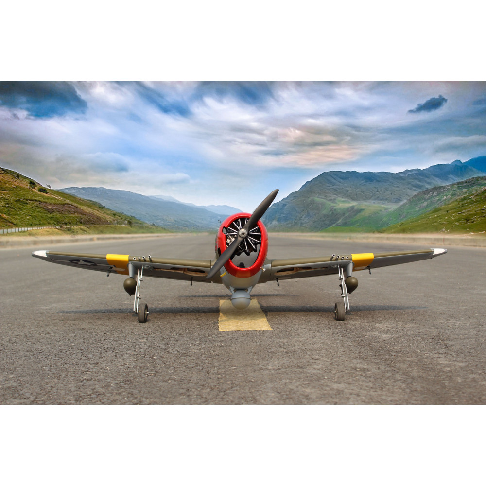 - Ha készen állsz a lendületre, válts kétlapátos légcsavarra és spinnerre, távolítsd el a NACA cseppeket és dobd el a vezérlőkarokat. Akkor a Gull P-47D MK II nagyszerű második repülőgéppé válik. Megtanulhatod a műrepülést, miközben tökéletesíted a fékszárnyakkal történő helyben leszállást. Ha fel akarsz lépni egy harci madárra, ez a gép jó ugródeszka lehet.