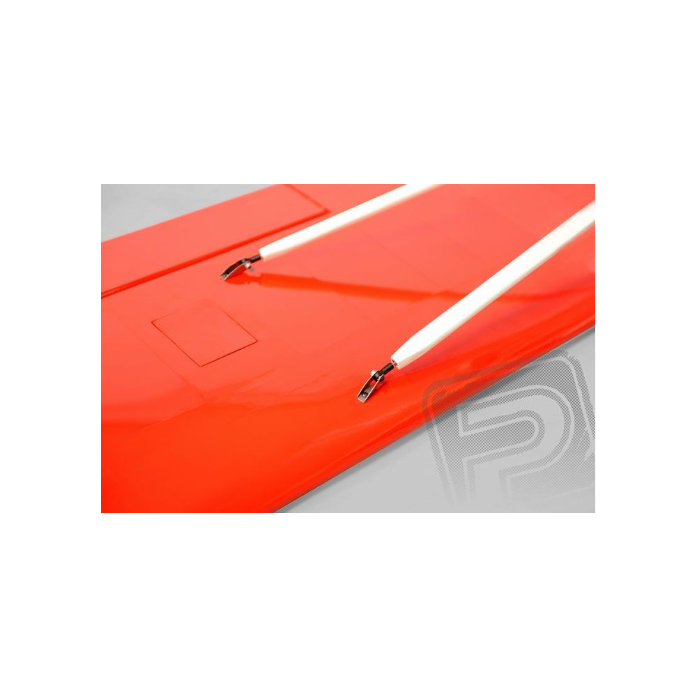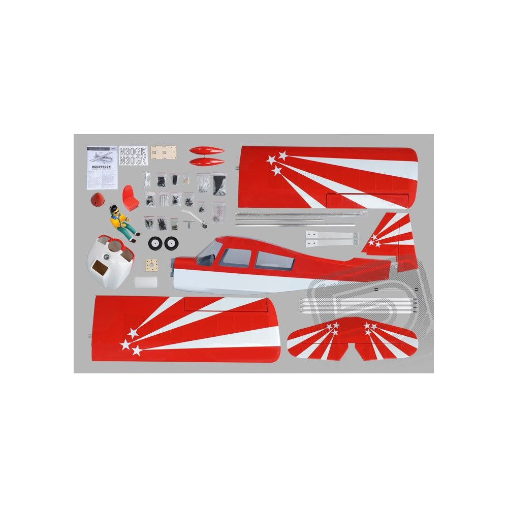 készlet a következőket tartalmazza: épített törzs, Oracover fóliával bevont szárny- és farokfelületek, üvegszálas motorborítás, duralumin futómű, szárnyvégek, kormányozható farokcsúcs, kerekek, üzemanyagtartály, légcsavarkúp, apró tartozékok, matricás ív és képes útmutató.