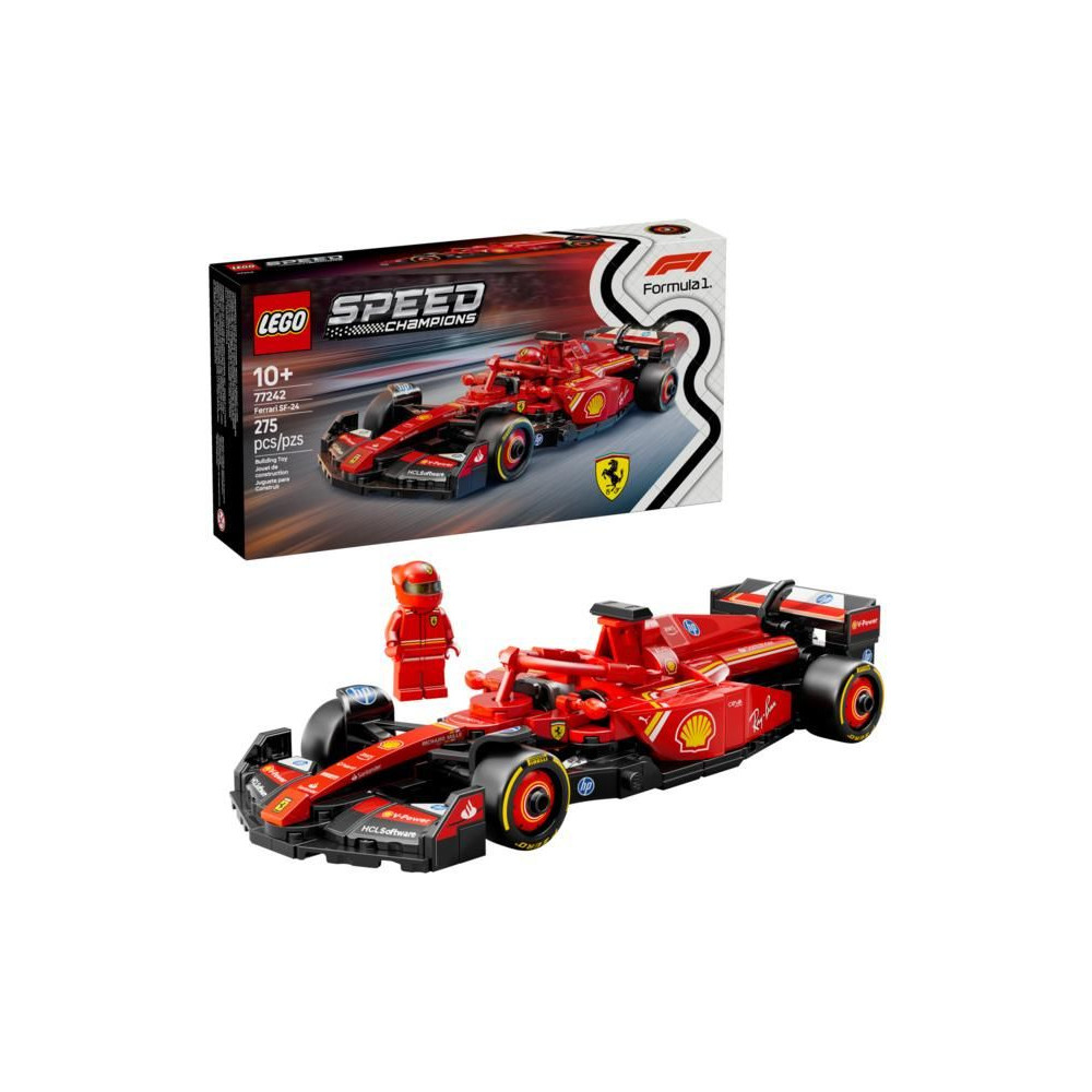 A 10 éves kortól induló fiúk és lányok egyaránt izgalmas Formula–1-es futamokra számíthatnak ezzel a lenyűgöző LEGO® Speed Champions (77242) Ferrari SF-24 F1® versenyautóval és sofőrrel. A Ferrari modellautó részleteit a 2024-es Forma-1-ben versenyző igazi autó ihlette, így a gyerekek és az autógyűjtők egyaránt megépíthetik, kiállíthatják és versenyezhetnek vele.