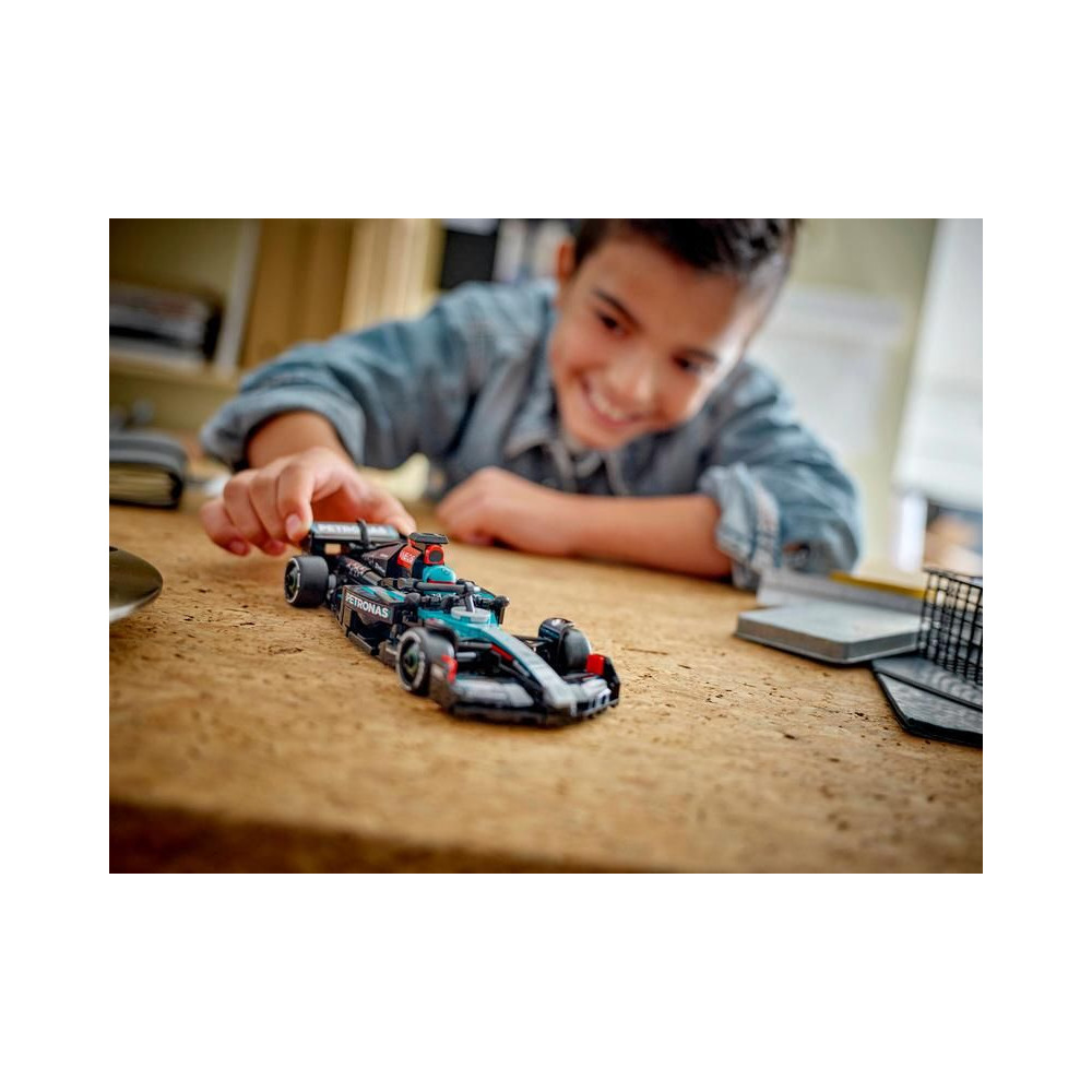 Ez az F1-es autómodell egy olyan pilótafülkével rendelkezik, amely a glória felemelésével nyitható, valamint tartalmaz egy hátsó szárnyat, párhuzamos tengelyt, szponzori matricákat és szélesebb, "Pirelli" feliratú hátsó gumiabroncsokat. A megépíthető modell tartalmaz egy Mercedes-AMG PETRONAS F1 Team ruhában és szárnyas sisakban lévő sofőr minifigurát is, amelyet a pilótafülkébe helyezhetsz és a gázpedálra léphetsz.