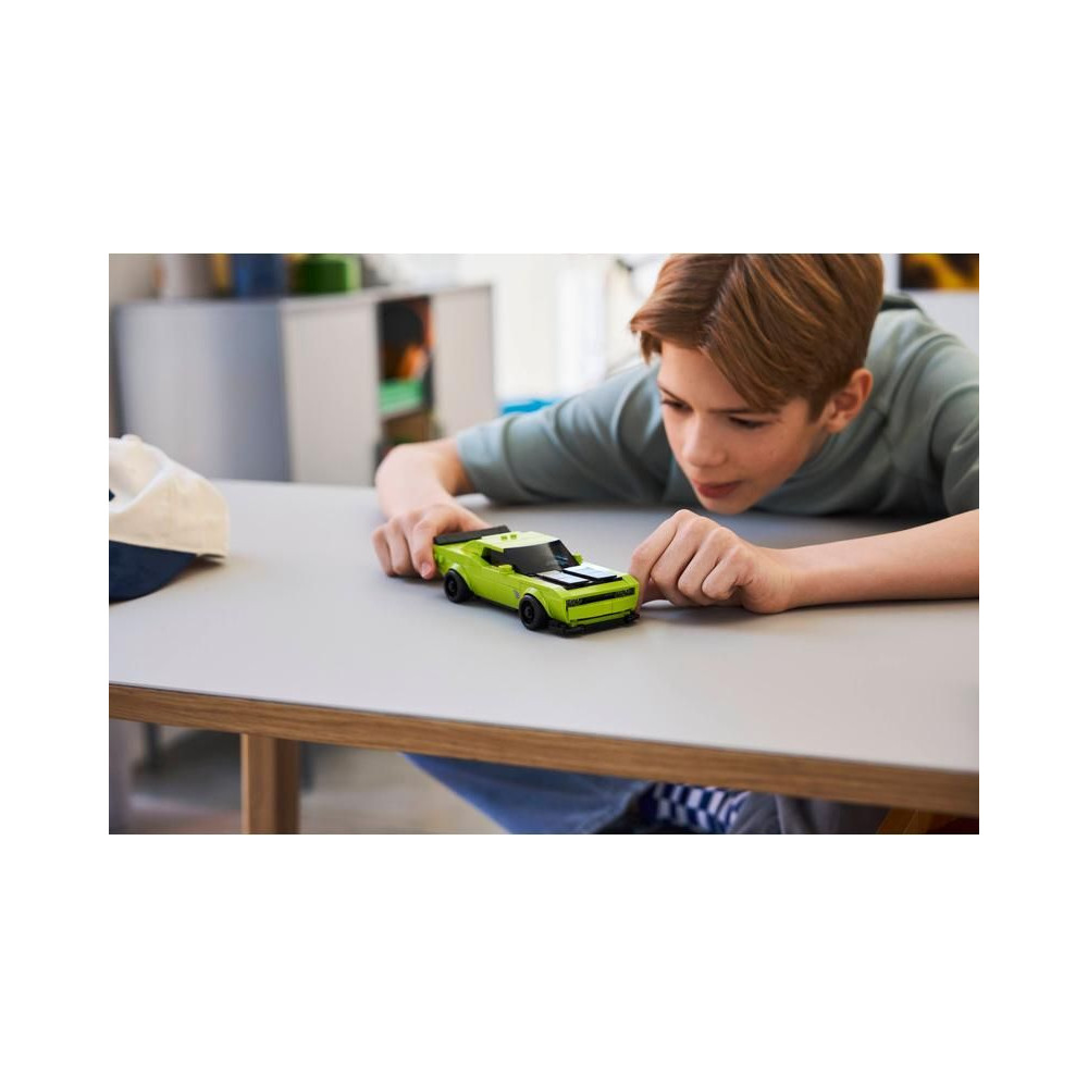 - Nagy teljesítményű sportautó kis építőknek - A 9 éves vagy annál idősebb gyermekek és a nagy teljesítményű sportautók rajongói megépíthetik és kiállíthatják a LEGO® Speed Champions Dodge Challenger SRT Hellcat sportautó versenymodelljét.
