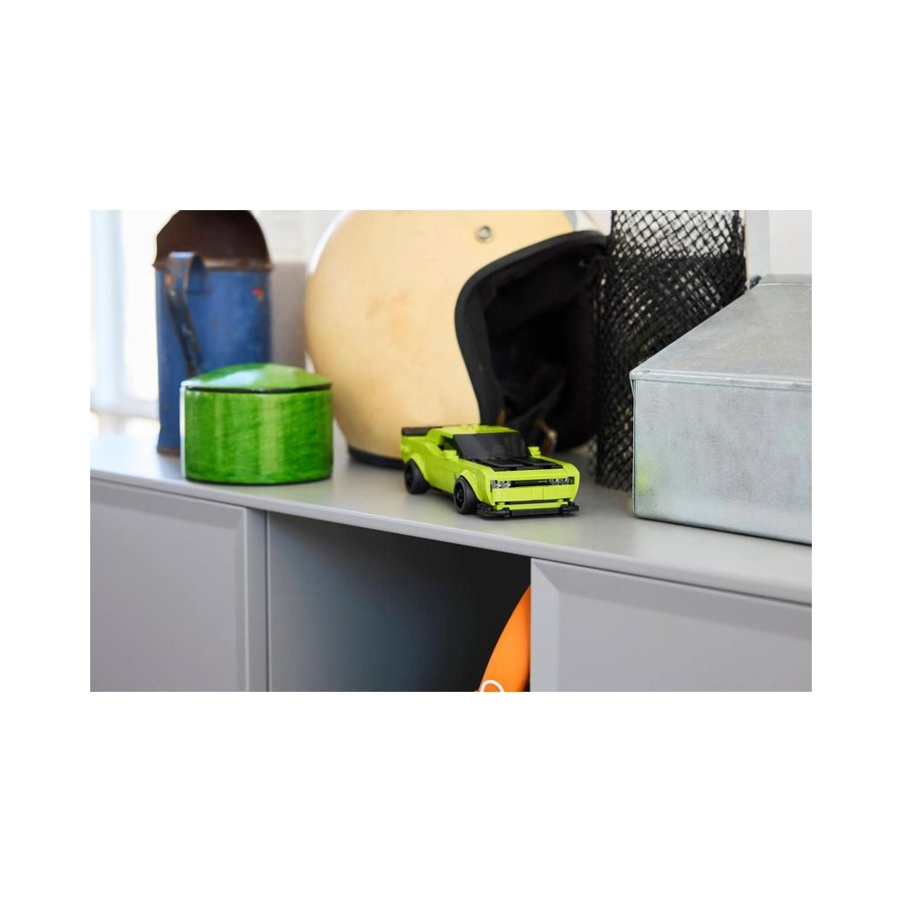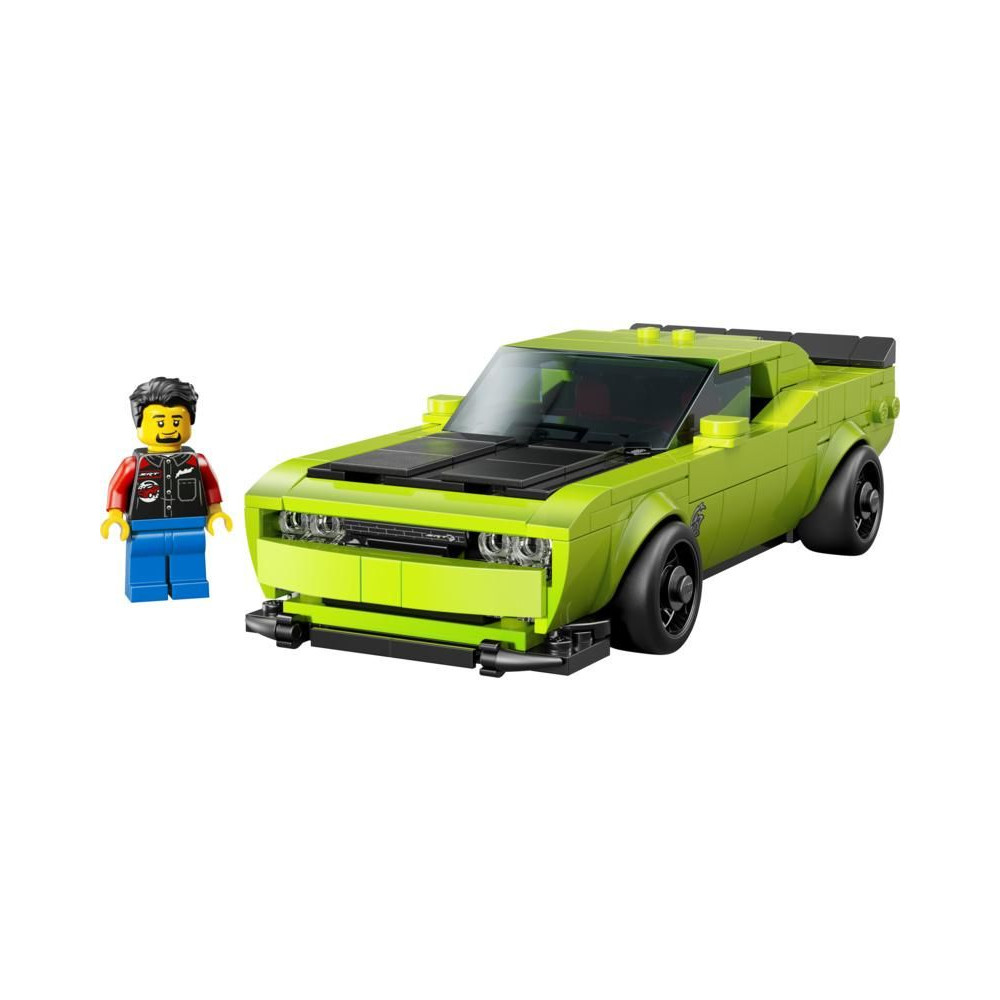 Ez a kétajtós kupé az első modern Dodge autó, amely megjelent a LEGO Speed Champions kínálatában. A modell hosszú motorháztetővel, domború szívócsővel a motorháztetőn, jellegzetes első maszkkal és dupla kipufogóval rendelkezik. A gyűjtői modell egy sofőr minifigurát is tartalmaz, amellyel a gyerekek és a sportautók rajongói versenyezhetnek a pályán és az utakon.
