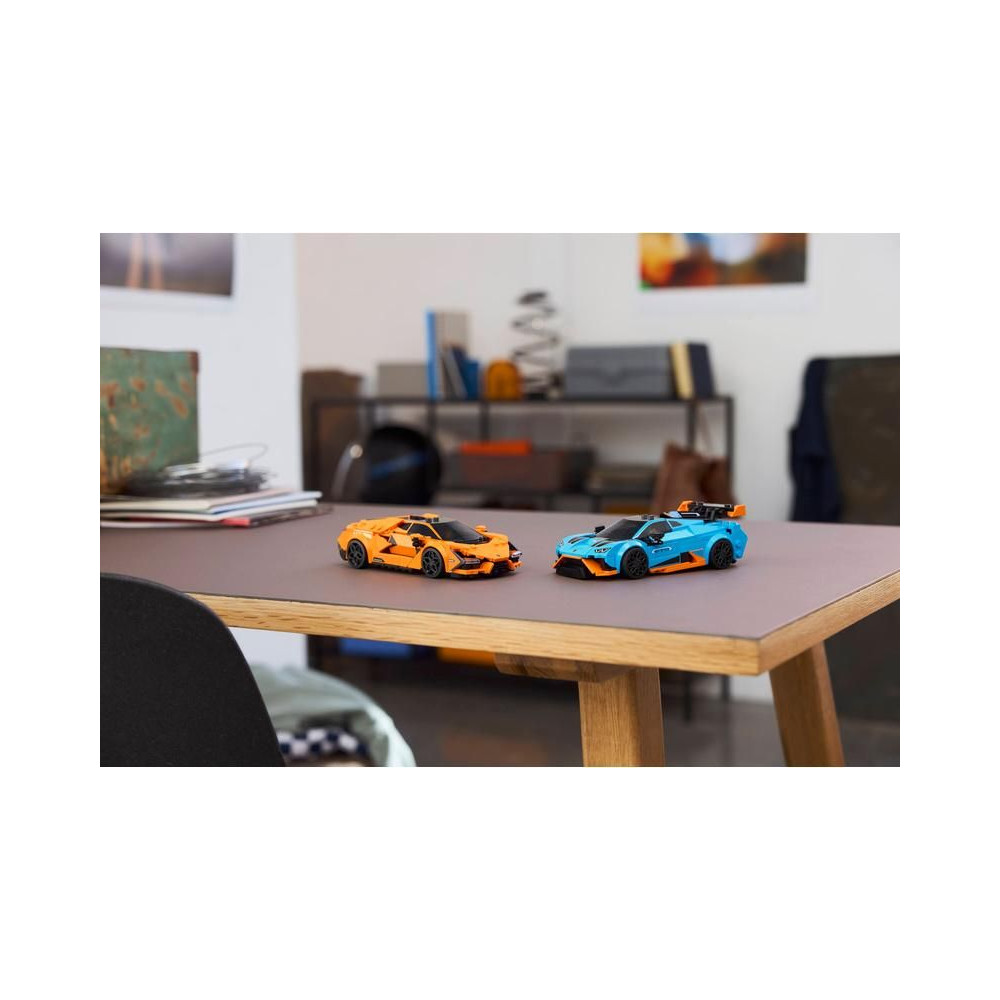 A V12-es motorral szerelt Revuelto az olasz autógyártó legerősebb modellje, a Huracán STO pedig ideális közúti és versenypályás használatra. Mindkét autómodell a valódi Lamborghini autók hiteles részleteivel büszkélkedhet, beleértve a szívócsöveket, sárvédőket, futurisztikus fényszórókat és Y alakú hátsó lámpákat. Minden játékautó tartalmaz egy sofőr minifigurát, akit a gyerekek a volán mögé ültethetnek, és versenyezhetnek vele.