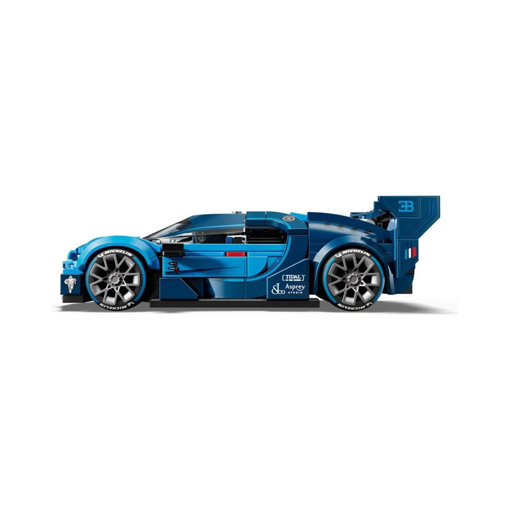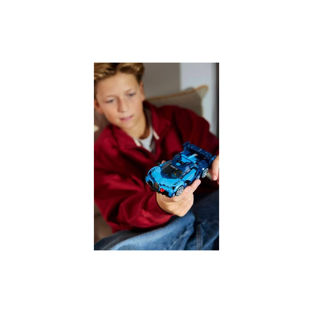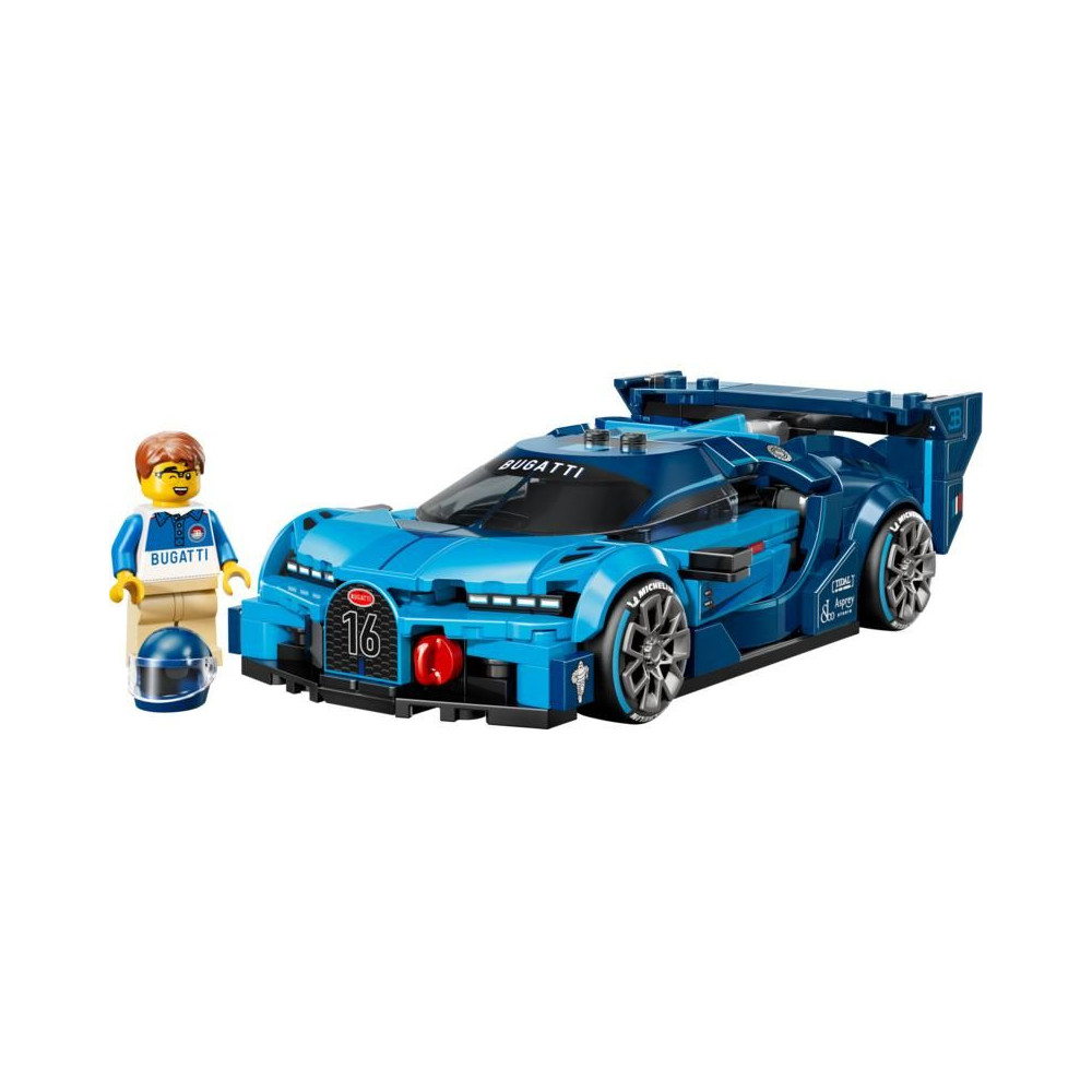 A Bugatti modell részleteit a 2015-ös Gran Gran Turismo videojátékhoz tervezett Bugatti autó ihlette. Ilyenek például a patkó alakú első hűtőrács, a hátsó szárny, a jellegzetes 8 fényszóró, a tetőuszony és a széles, Michelin mintás gumiabroncsok. A készlet tartalmaz egy Bugatti ruhába öltözött minifigurát is, akit elhelyezhetsz a pilótafülkében, és élvezheted a versenyzést vele.