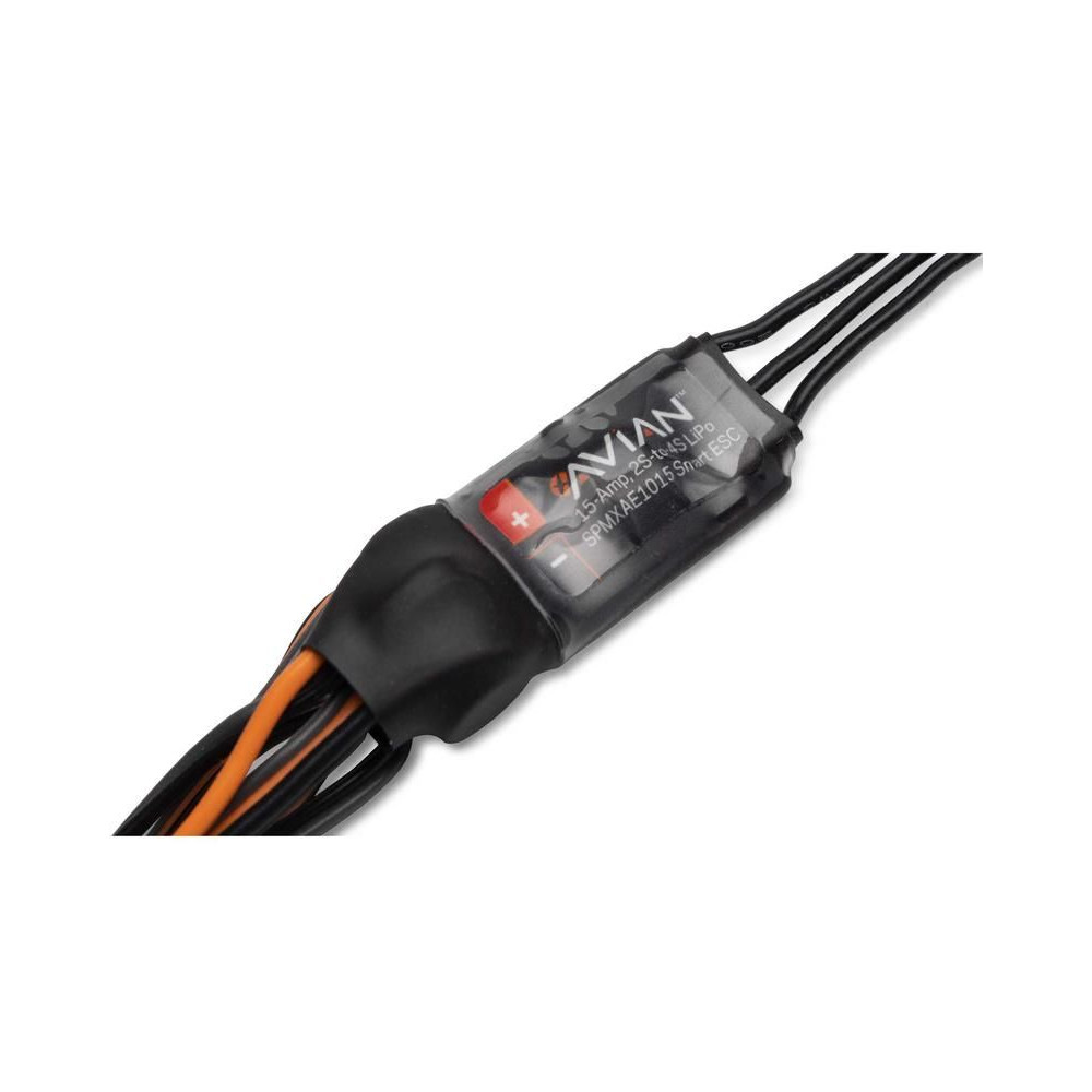 Pótalkatrész RC modell repülőgéphez E-flite Eratix 3D 0.86m: Spektrum Smart Avian 15A 3S vezérlő IC2 csatlakozóval. Túláram és hővédelem. Automatikus LiPo lekapcsolás alacsony feszültség esetén. Fail Safe védelem. BEC 3A.
