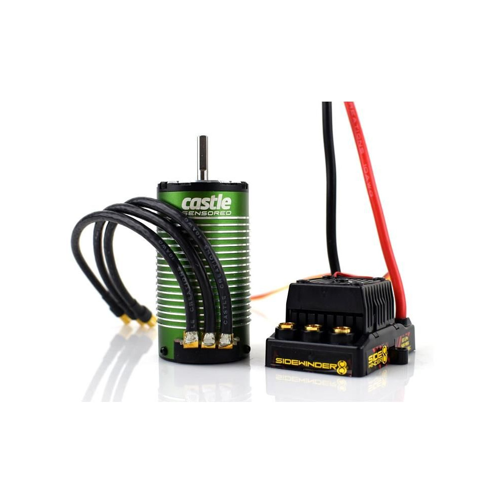 A Castle 1515 2200rpm érzékelős AC motorból és Sidewinder 8 vezérlőből álló kombó alkalmas 1:8 buggy, truggy és közúti RC autó modellekhez 2-6S LiPol tápegységgel és BEC 8A vagy 1:10 szörnyekhez 5kg súlyig. Nagyszerű frissítés SC 4WD-vel 3S - 4S-re.