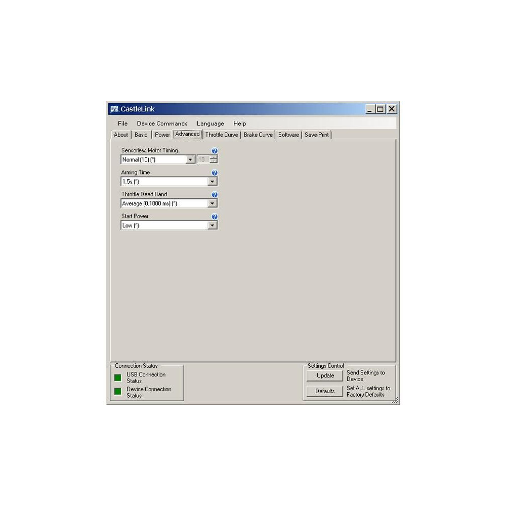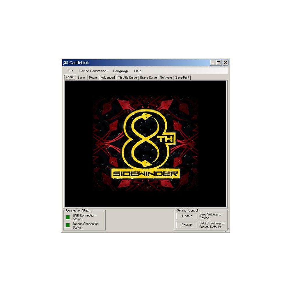 ACastle Sidewinder 8 WP a legjobb választás 1:8 és 1:10 méretarányú modelljeidhez 5 kilogrammos modellsúlyig. A nagy teljesítményű jelfeldolgozó processzor (DSP) és a fejlett algoritmusok használatának köszönhetően nagyon finom motorvezérlés biztosított a legalacsonyabb sebességtől kezdve. Beállíthatja a levágási feszültség típusát, a levágási feszültség értékét, a motor forgásérzékelését, a motor típusát, az időzítést, a maximális orsóteljesítményt, a maximális hátrameneti teljesítményt, a fékteljesítményt, a fékerőt üresjáratban, a gázgörbét és a fékgörbét, Természetesen lehetőség van a vezérlő firmware-jének felülírására, hogy a jövőben új funkciókat kapjon.