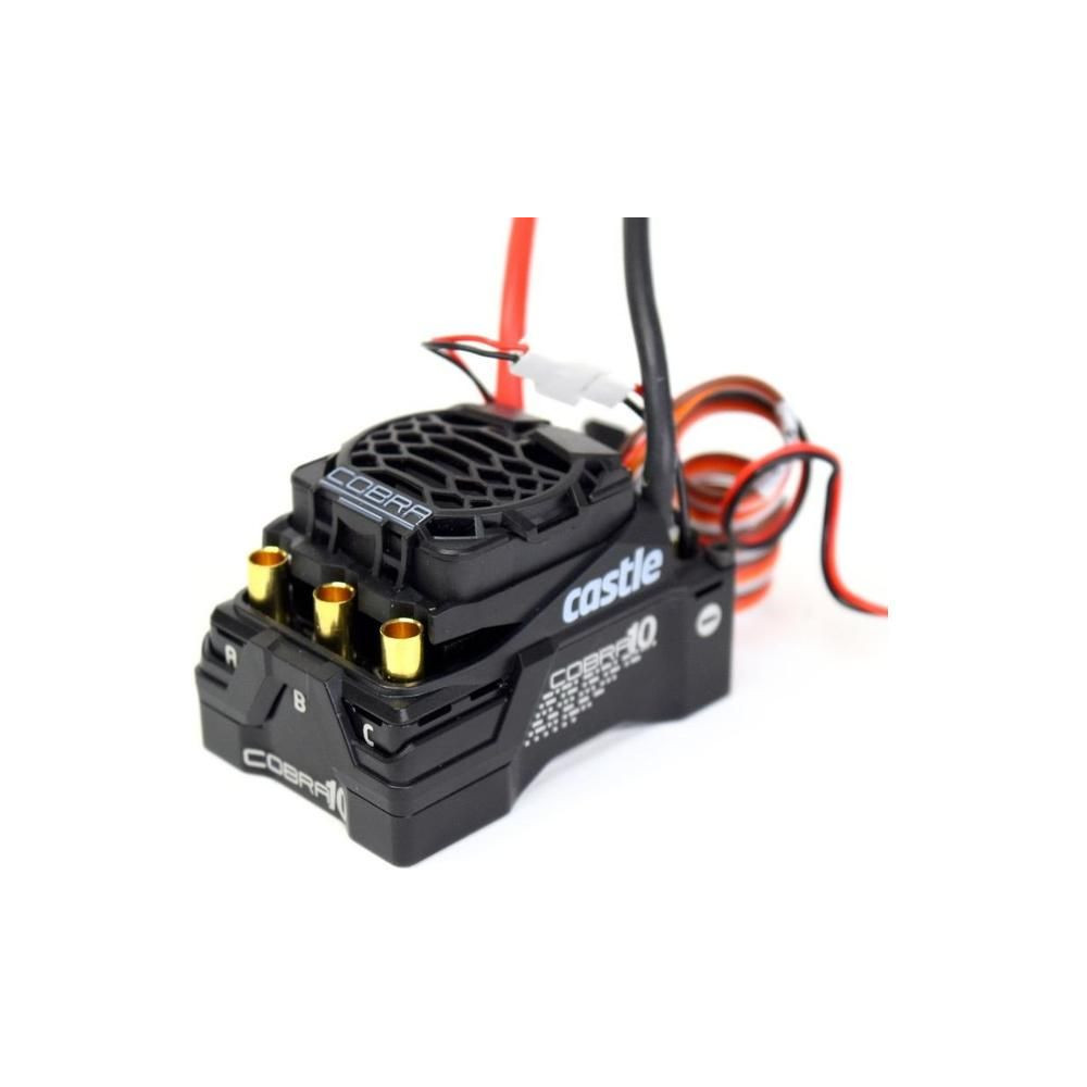 Erőteljes Castle Cobra 10 sebességes vezérlő AC szenzoros motorral 1406 3800rpm/V, alacsony sebességű RC autómodellekhez 1:10 méretarányban, maximum 4 kg-ig (expedíciós típusú, lánctalpas). Agresszívabb, akár 2,3 kg-os rock versenymodellekhez is használható. Tápegység ehhez a kombóhoz 2-3S LiPo, állítható BEC 5-8V (max. terhelés 8A). A szabályozót a nulláról újra tervezték, és a csúcstechnológiás elektronikát számos szoftveres fejlesztéssel ötvözi. A forradalmi CRYO-DRIVE technológia növeli az elektronika hatékonyságát és csökkenti annak hőmérsékletét. A pontosság és a teljesítmény új korszakát egy kétmagos, 32 bites mikrovezérlő biztosítja. Egyenáramú motor, váltakozó áramú motor és váltakozó áramú érzékelőmotor csatlakoztatható a vezérlőhöz.