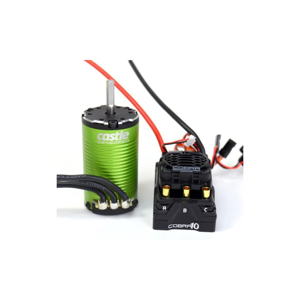 Nagy teljesítményű Castle Cobra 10 sebességszabályozó AC szenzoros motorral, 1412 3200 fordulat/perc/V, 1:10 méretarányú RC autómodellekhez, maximum 3 kg súlyig (ideális 2WD/4WD modellekhez, mint például SCT, Monster truck, Rock Racers 3S LiPo akkumulátorral). Alacsony sebességű átalakítással 4S LiPo akkumulátorokon is használható. Könnyebb 2WD Stadium teherautó modellekhez és 4S LiPo buggy-khoz is alkalmas. Tápegység ehhez a kombóhoz 2-4S LiPo, állítható BEC 5-8V (max. terhelés 8A). A szabályozót a nulláról újra tervezték, és a csúcstechnológiás elektronikát számos szoftveres fejlesztéssel ötvözi. A forradalmi CRYO-DRIVE technológia növeli az elektronika hatékonyságát és csökkenti annak hőmérsékletét. A pontosság és a teljesítmény új korszakát egy kétmagos, 32 bites mikrovezérlő biztosítja. Egyenáramú motor, váltakozó áramú motor és váltakozó áramú érzékelőmotor csatlakoztatható a vezérlőhöz.