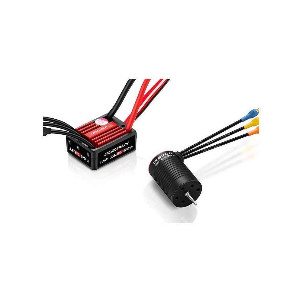 QUICRUN 16BL30 AC szabályozó és QUICRUN 2435SL G3 4500KV érzékelő nélküli motor kombinációja. Ideális 1:16/1:18 áttételű közúti és terepjárókhoz 2-3S LiPo tápegységgel.
