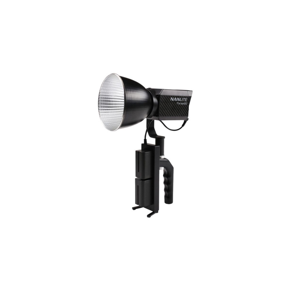 A fogantyú egy állványra is felszerelhető, ha a Nanlite Forza 60 LED-lámpát Sony NP-F akkumulátorokkal szeretné működtetni.