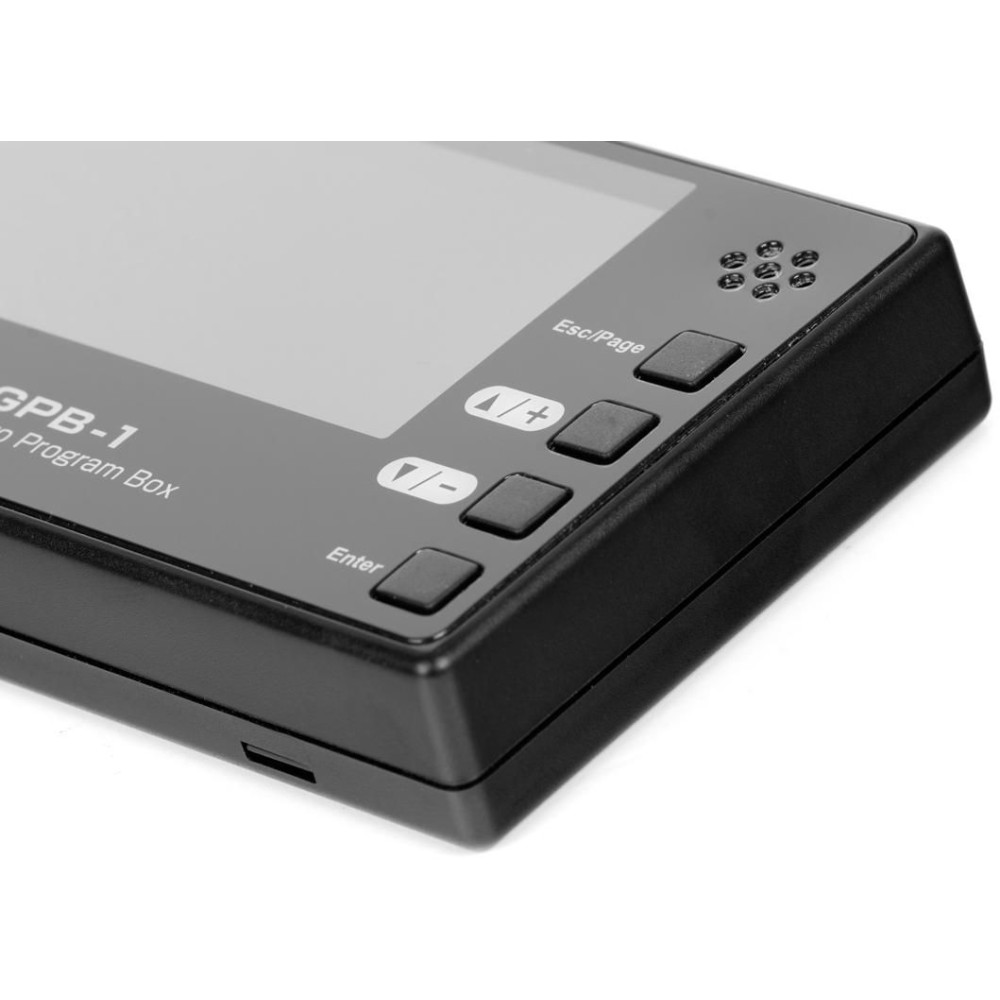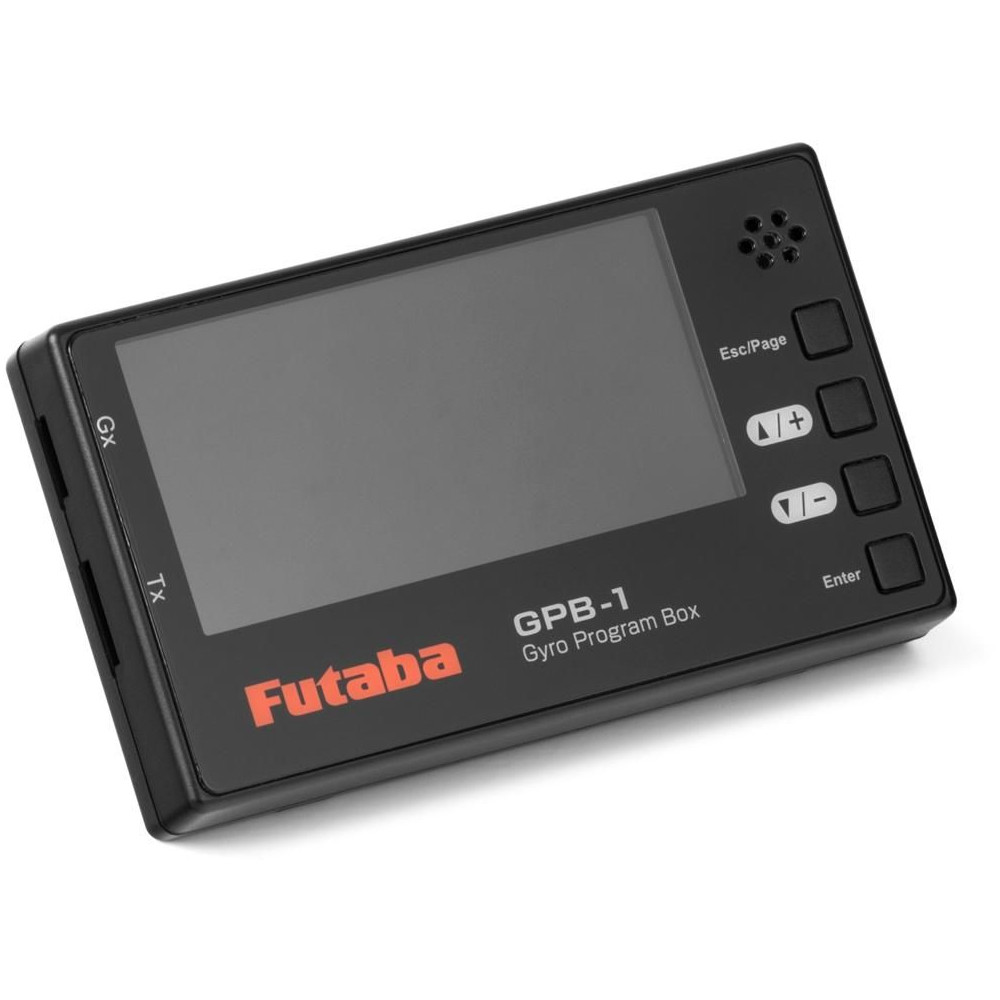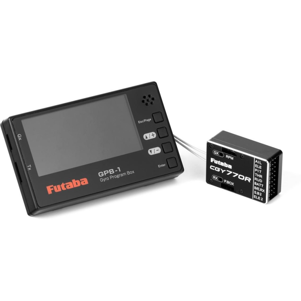 Intelligens programozó grafikus LCD kijelzővel (128x64 pont) a Futaba CGY 770R, CGY760R, CGY755 helikopterekhez és a GYA553 repülőgépekhez való giroszkópos rendszerek beállításához. A beállítás lehetséges közvetlen kábeles csatlakozással a giroszkóphoz (a teljes paramétertartomány beállítása), vagy vezeték nélkül a tanár-diák rendszeren keresztül, ha egy kompatibilis Futaba adóhoz csatlakozik (korlátozott paramétertartomány). A GPB-1 lehetővé teszi az S.BUS/S.BUS2 Futaba szervomotorok beállítását is.
