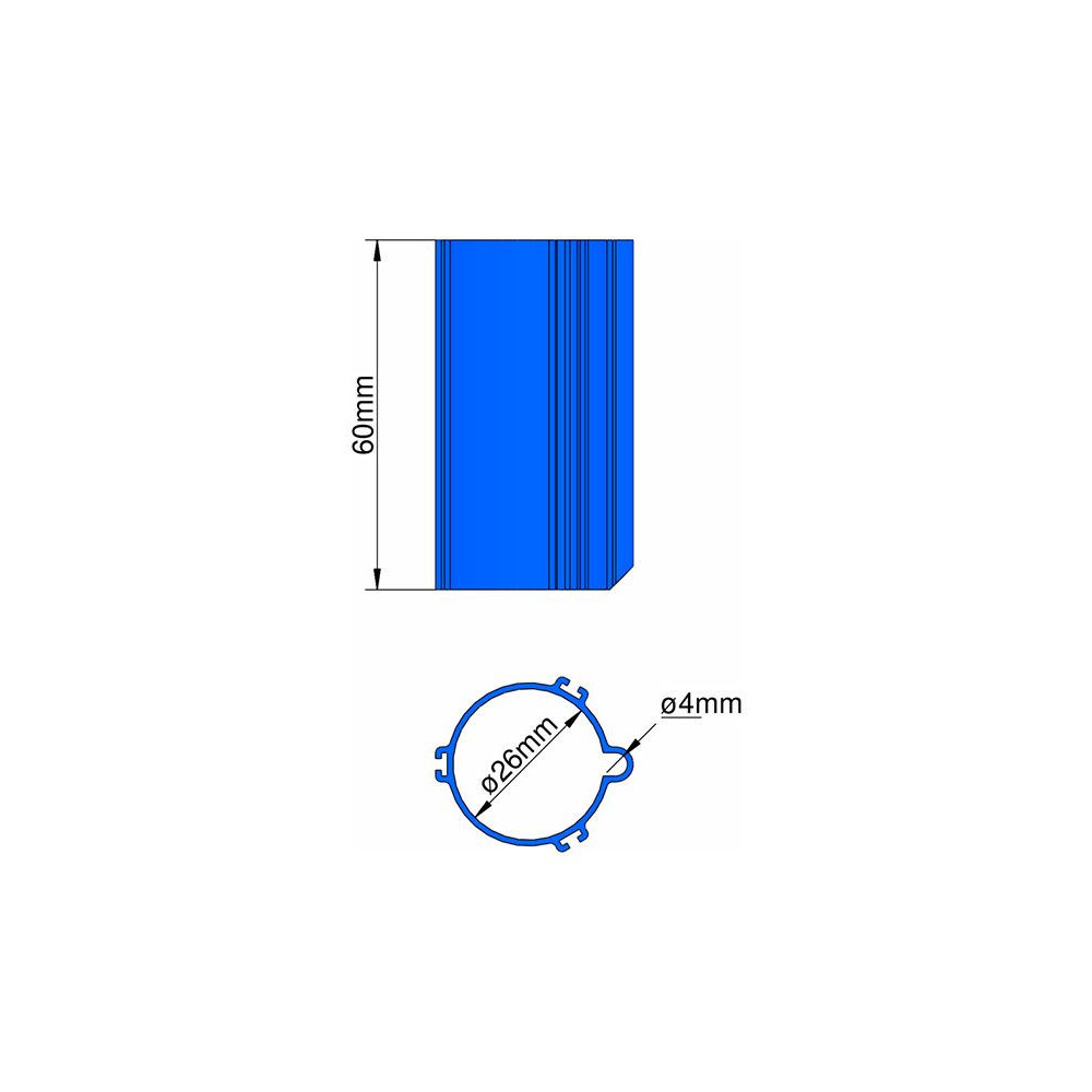 Légkondicionáló alap 26 mm átmérőjű csövekhez, 3 stabilizátorhoz való konzolokkal, kék színű. Az alap magassága 60 mm. Könnyű és tartós műanyag. 4 mm-es vezető az indítórúdhoz.