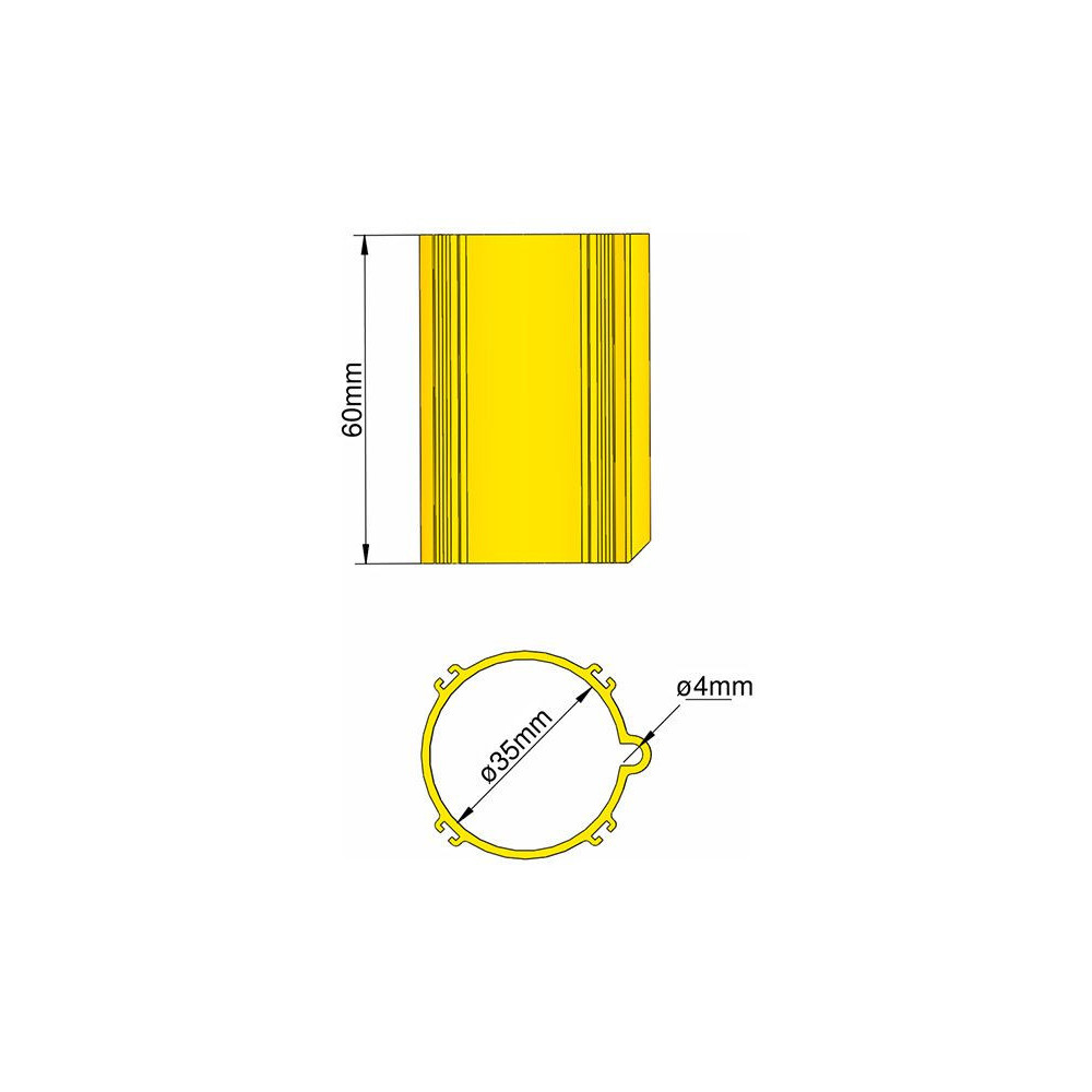 Légkondicionáló talapzat 35 mm átmérőjű csövekhez, 4 stabilizátorhoz való konzolokkal, sárga. Az alap magassága 60 mm. Könnyű és tartós műanyag. Vezető 4 mm-es indítórúdhoz.