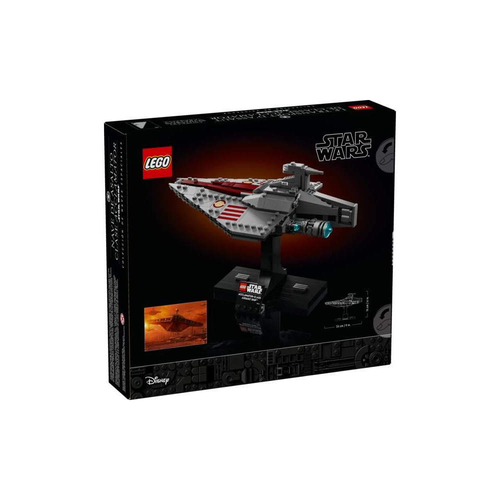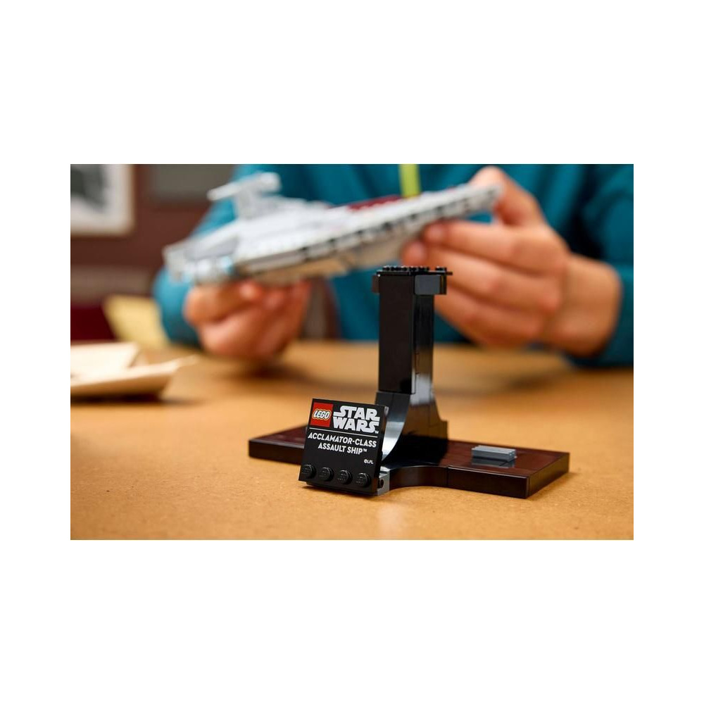 - Építs és állíts ki egy űrhajó modellt - Éld át újra a Geonosis bolygóért vívott csata drámai jeleneteit, és építs egy közepes méretű LEGO® Star Wars Acclamator osztályú támadóhajó modellt.