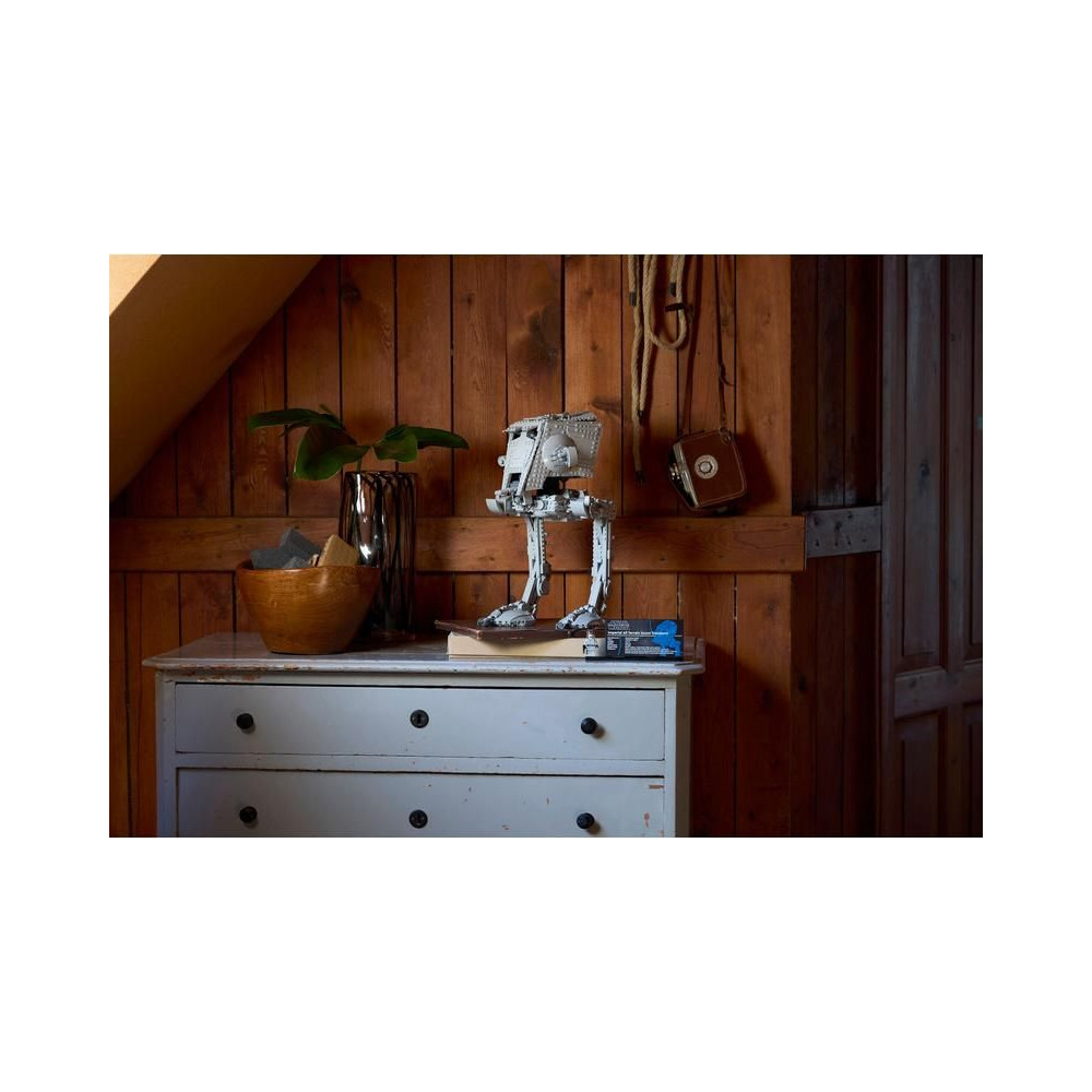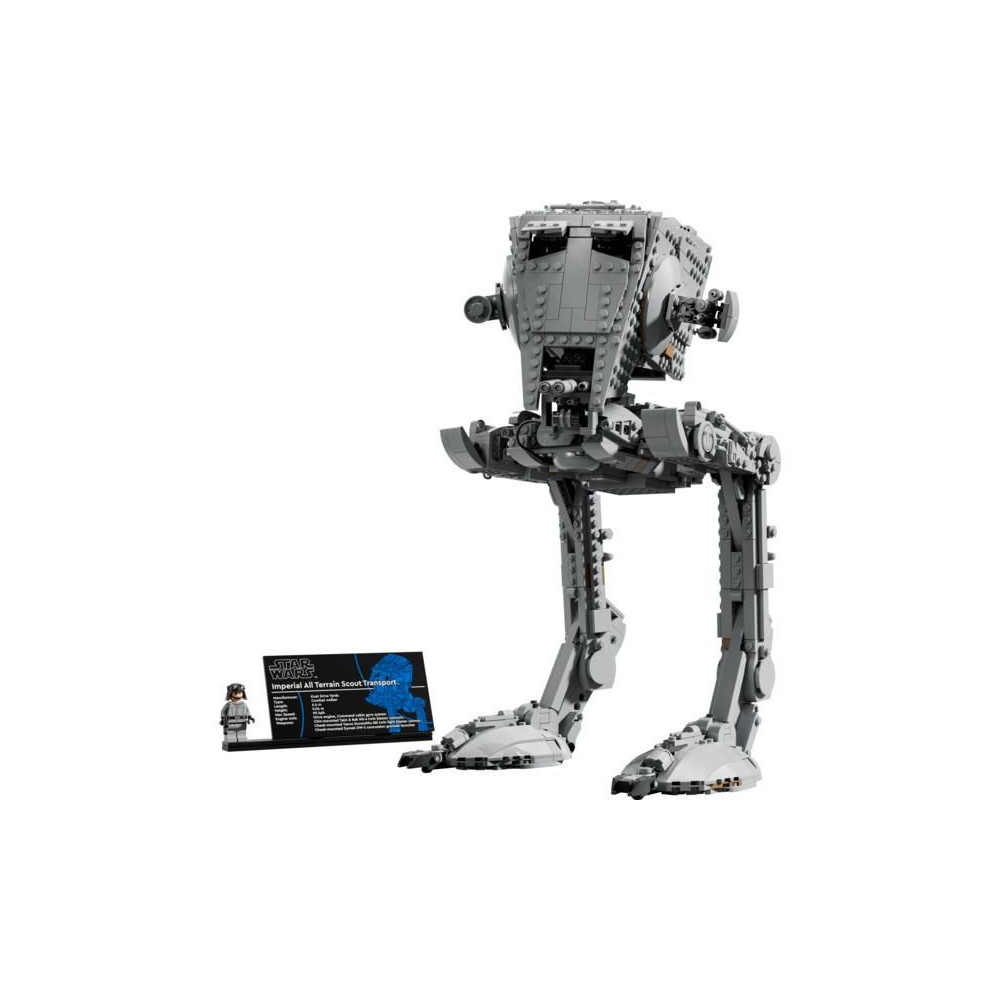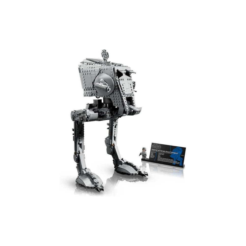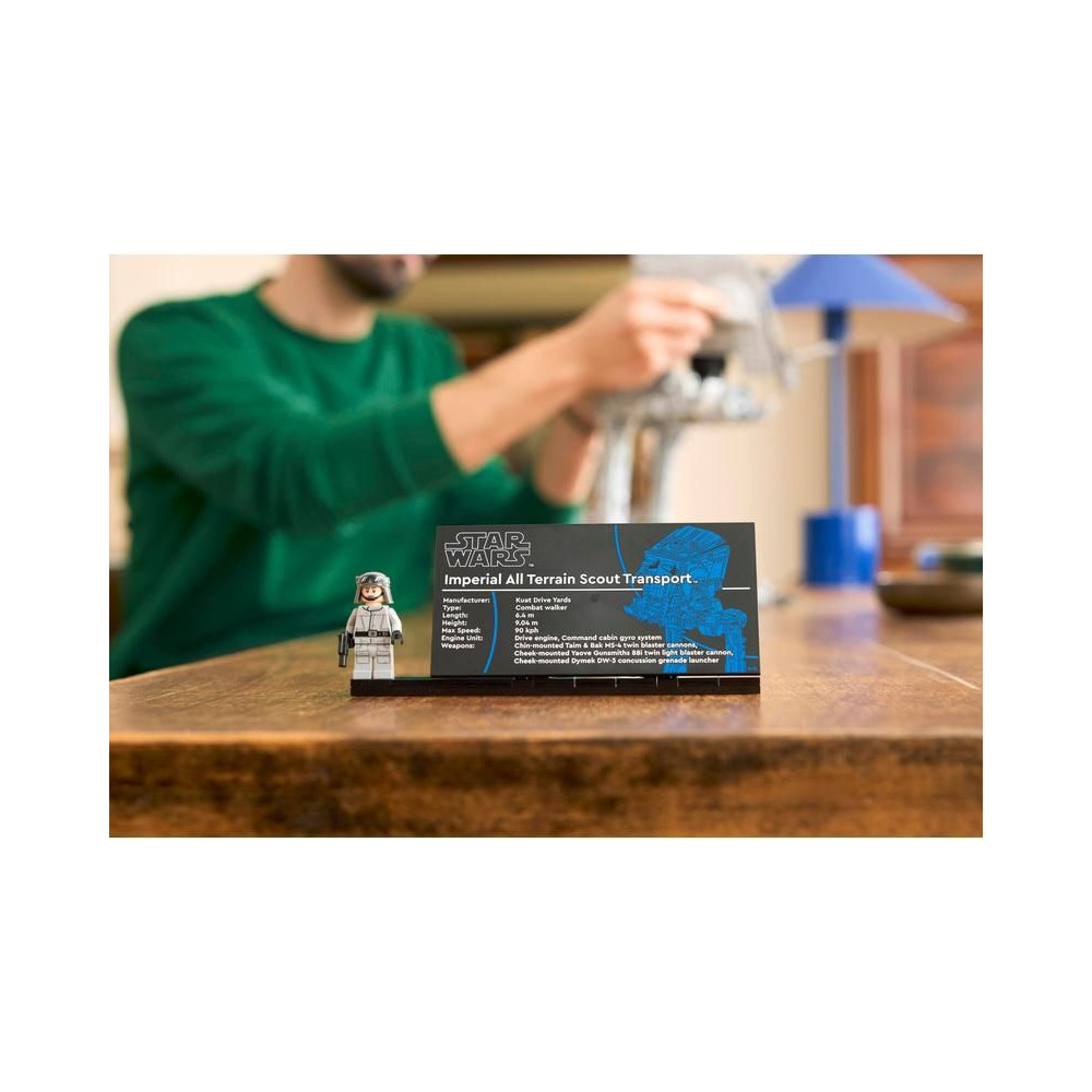 Ez a gyűjthető, kockából készült jármű egy információs táblával és egy egyedi LEGO Star Wars AT-ST sofőr minifigurával (karjain a Birodalmi címernyomattal) van felszerelve, hogy teljessé tegye ezt a szemet gyönyörködtető kiállítási darabot.