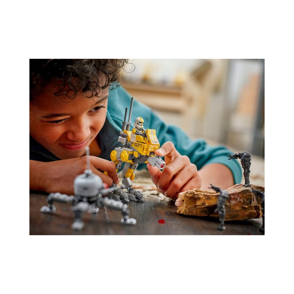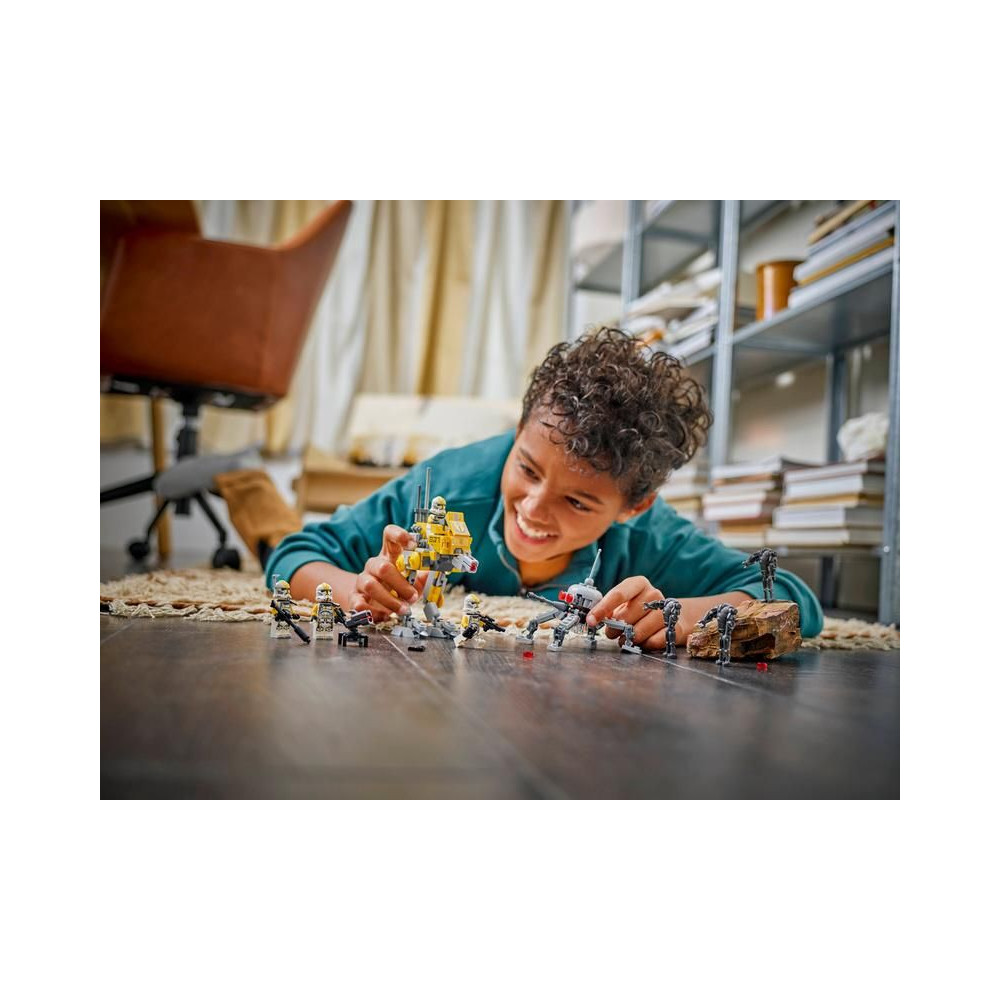 - Star Wars™ csatákhoz készült – A készlet tartalmaz egy AT-RT lépegetőt LEGO® minifigura pilótafülkével, egy lézerfegyver- és távcsővetőt és tárolót, egy mozgatható pókdroidot és egy tüzelőtornyot