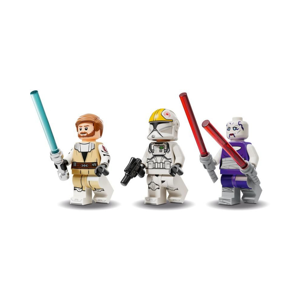 A harcoskészlet 3 LEGO Star Wars minifigurát tartalmaz, köztük Asajj Ventress-t 2 piros, különleges, ívelt markolatú fénykarddal, és Obi-Wan Kenobi tábornokot egy kék fénykarddal az akciódús csatákhoz.