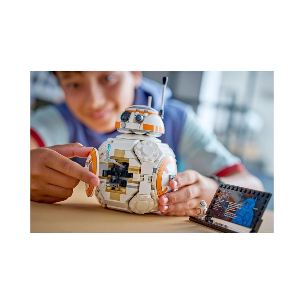 Ne hagyd ki az imádnivaló és aranyos LEGO® Star Wars™ Asztromechanikus Droid BB-8™ készletet gyerekeknek! Örökítsd meg a Star Wars: Az ébredő Erő című film ikonikus droidjának hiteles részleteit LEGO kockák segítségével. Mozgasd a BB-8 figurát egy sík felületen, és forgasd a fejét véletlenszerű irányokba. A BB-8 testén lévő fedél kinyitásakor egy "fáklya alakú kéz" látható, mint abban a jelenetben, amikor "felfele mutató hüvelykujjat" mutatott Finnnek.