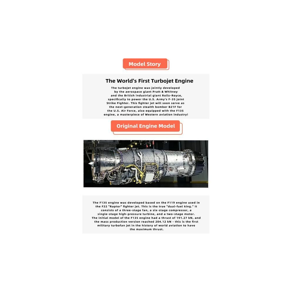 A modell prototípusa egy modern Pratt & Whitney F135 alacsony bypass-arányú, kétsugaras hajtómű, amely az ötödik generációs F-35 Lightning II többcélú vadászrepülőgépet hajtja. Az F135 hajtómű az F-22 Raptorban használt F119 hajtómű tervezésén alapul, és a harci repülőgépekbe telepített legerősebb sugárhajtóművek közé tartozik. Ez egy kétcsatornás, alacsony bypass-arányú turboventilátoros hajtómű, amely utánégetővel és állítható kimeneti fúvókával van felszerelve. A sorozatgyártású változatok maximális tolóereje utánégetővel eléri a körülbelül 190–200 kN-t, ami napjaink egyik legerősebb vadászhajtóművévé teszi.