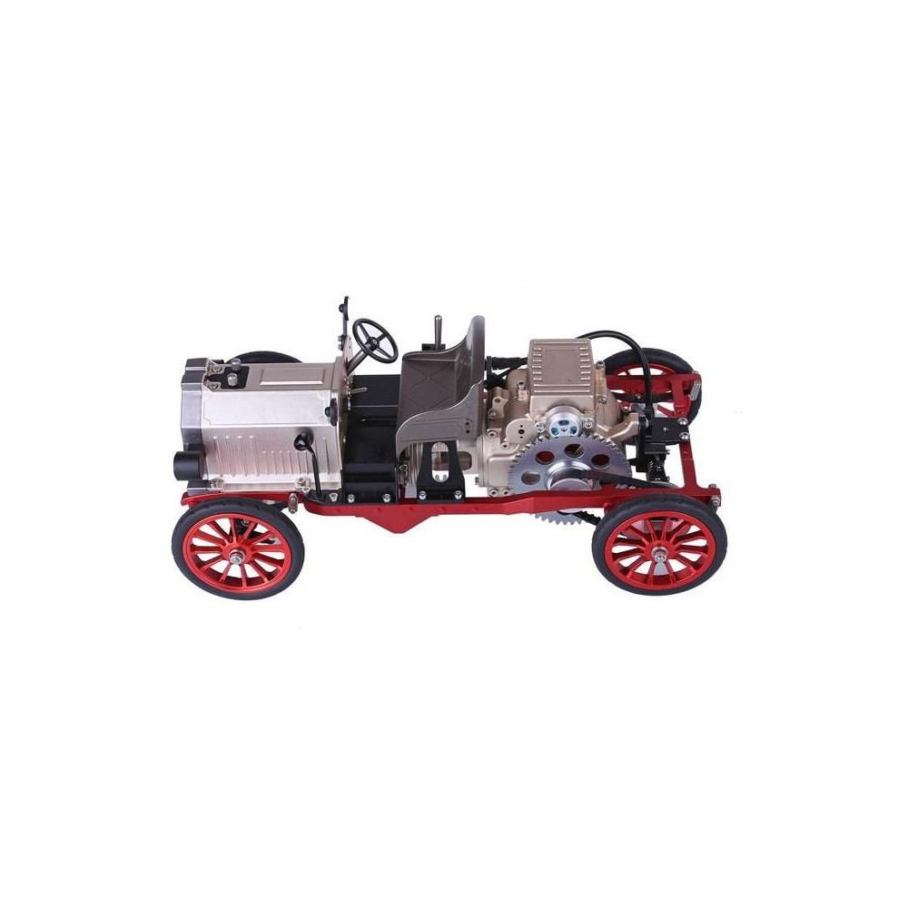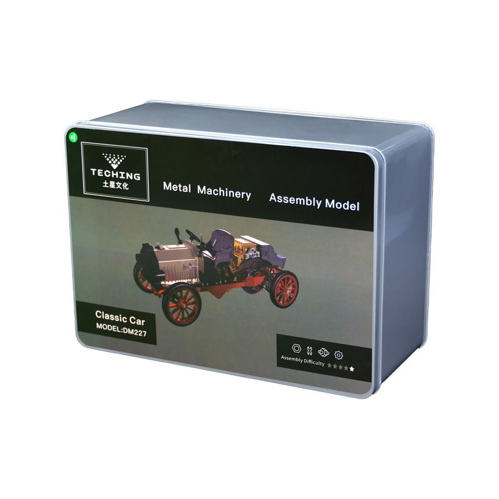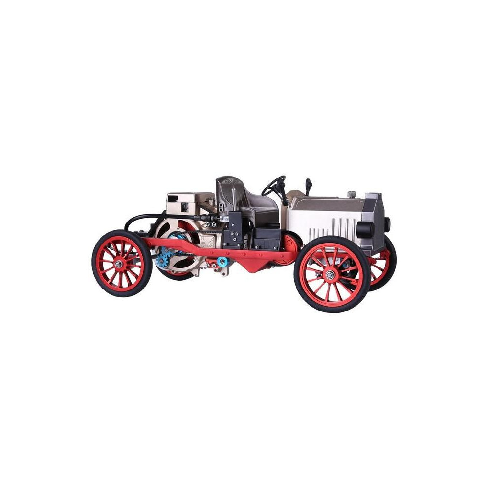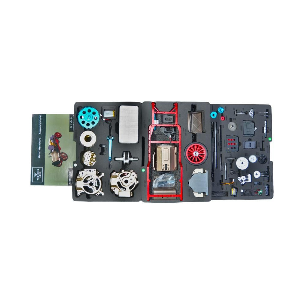 Teching precíziós fém modellkészlet - klasszikus autó. Egy egyhengeres motor mozgatható modelljét és egyéb, a mechanikai elveket bemutató funkciókat tartalmazza. Alkalmazásvezérlés, villanymotor, funkcionális vezérlés, világítás, elektronika és akkumulátor. Kiállítási és funkcionális modell.