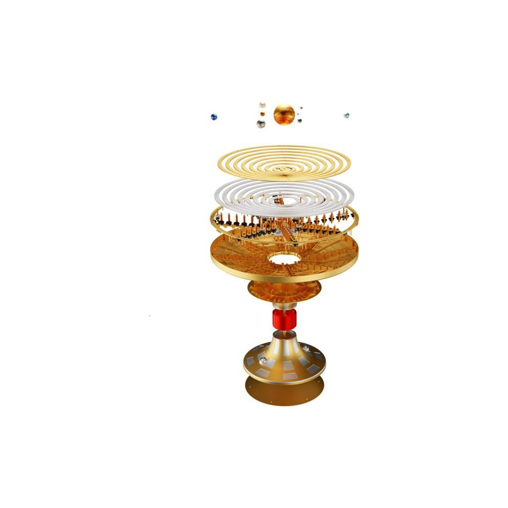 Teching precíziós fém modellkészlet - Naprendszer. A Naprendszer funkcionális modellje keringő és forgó bolygókkal, amely bemutatja a bolygók Nap körüli pályáját és mozgásuk alapvető mechanikáját. A modell precíz CNC megmunkált alkatrészeket tartalmaz. Kiállítási és funkcionális modell. Az integrált elektronikának, akkumulátornak és villanymotornak köszönhetően a modell magától forog. A készletet úgy tervezték, hogy maga az összeszerelés is élmény legyen. A kiváló minőségű kidolgozásnak és az egyes alkatrészek látható funkcionalitásának köszönhetően a modell alkalmas kiállítási és reprezentatív szoliterként, vagy oktatási segédeszközként. A modellt diákok, technológiai rajongók és gyűjtők egyaránt értékelni fogják. A Teching márka eredeti tervezésű és gyártású modellje, precízen megmunkált fém alkatrészekkel, egyszerű összeszerelést segítő képes utasításokkal és prémium csomagolással.
