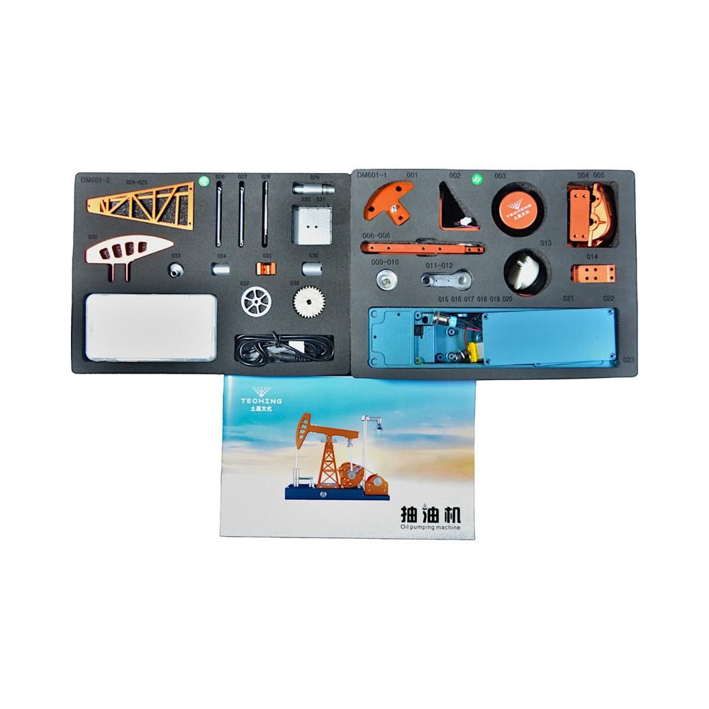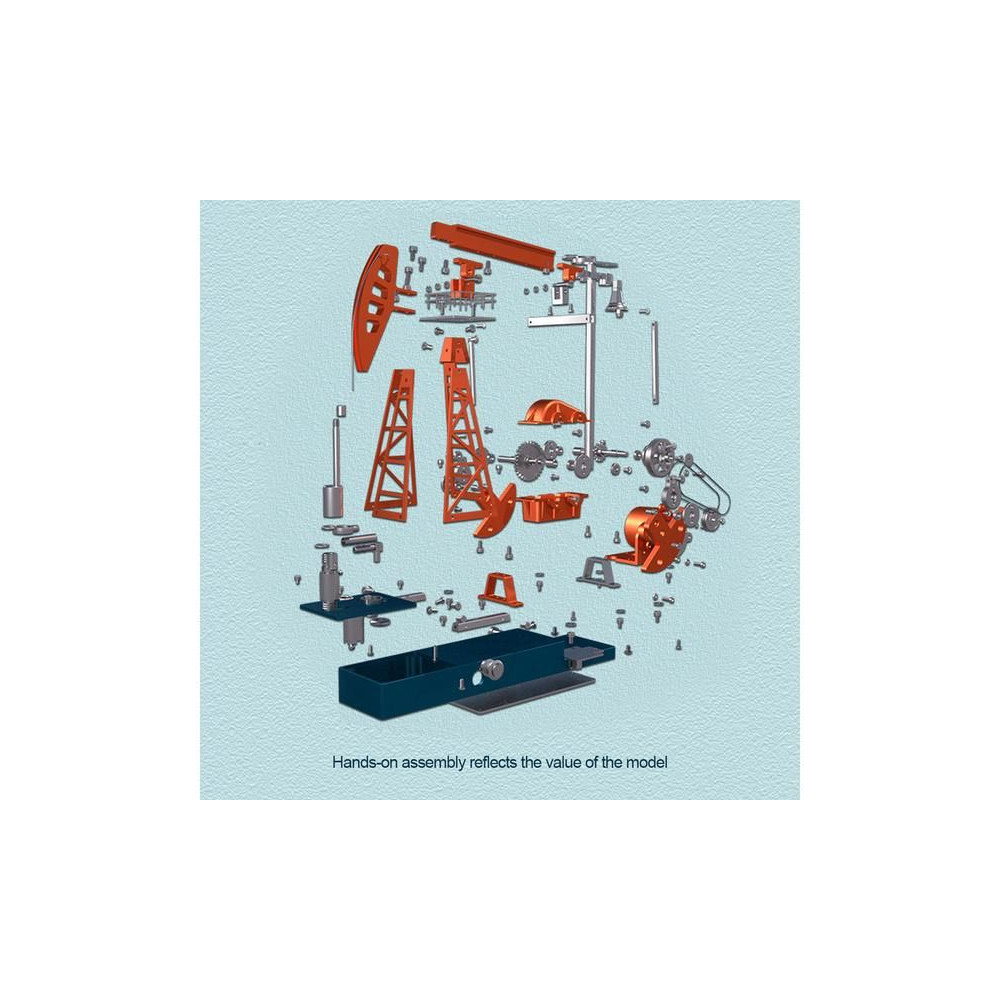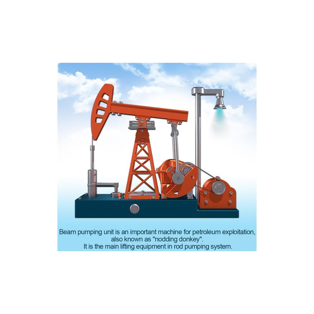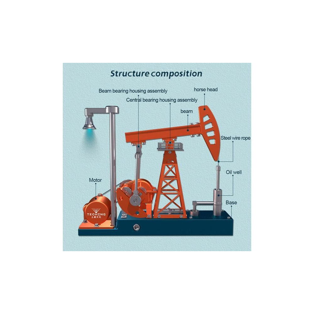 Precíz fémmodell készlet Teching - olajkitermelő szivattyú. Funkcionális modell, amely bemutatja az olajkiürítési mechanizmust. Valósághű mechanikai funkciók - billenőkar mozgása, folyadékszivattyúzás. Villanymotor forgatása, LED világítás a lámpában. Kiállítási modell.