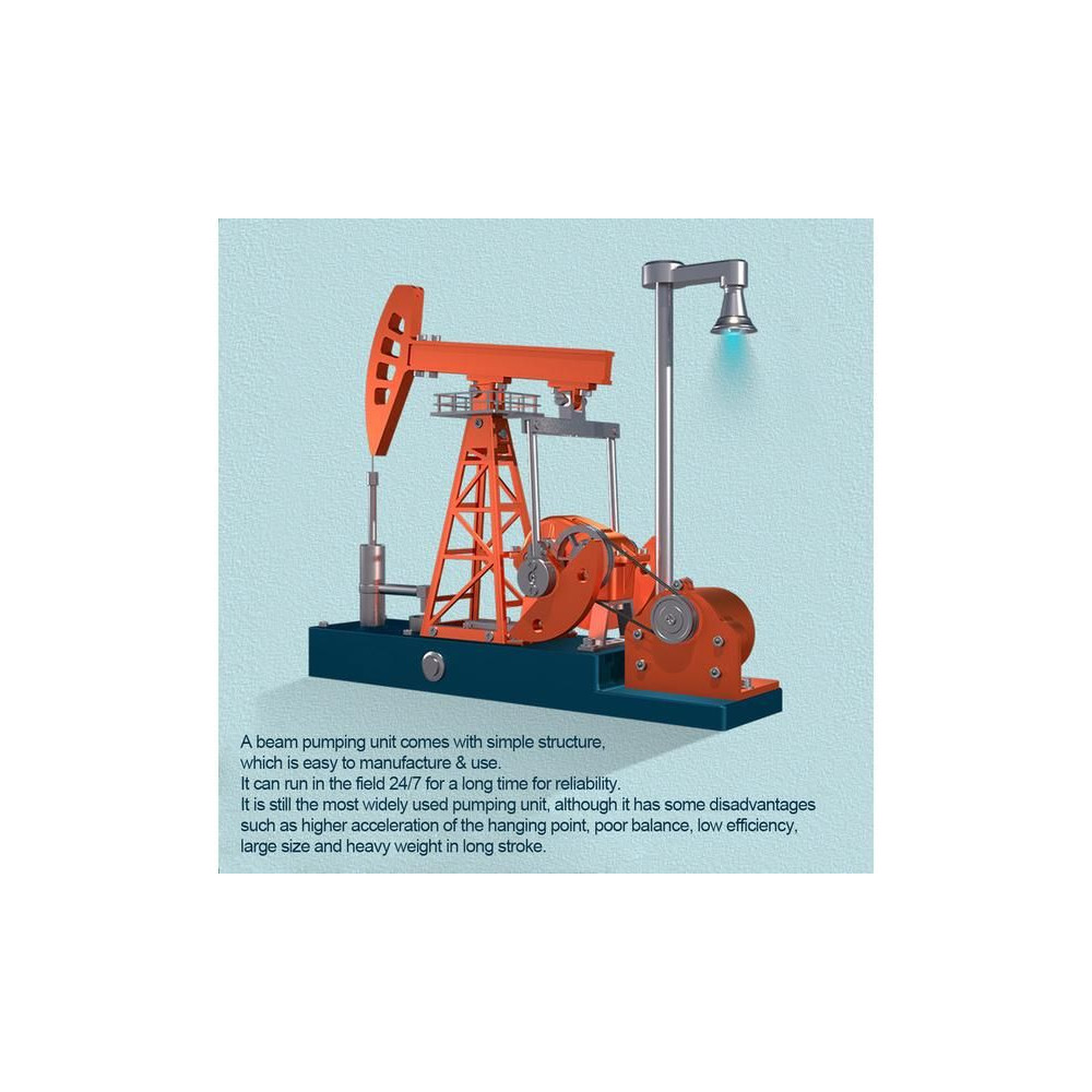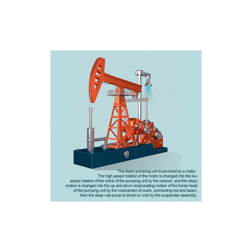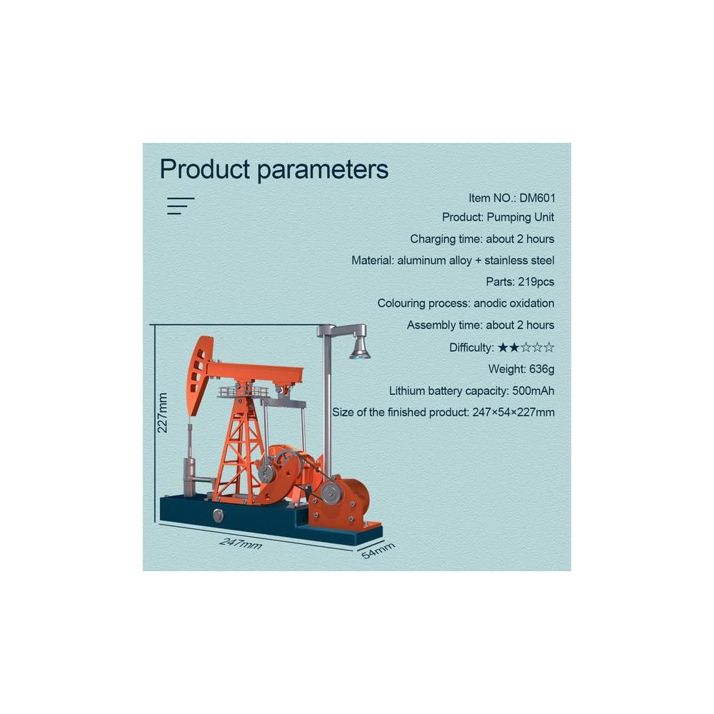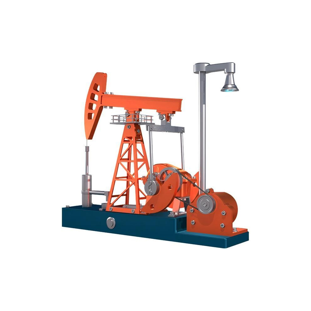 Precíz fémmodell készlet Teching - olajkitermelő szivattyú. Funkcionális modell, amely bemutatja az olajkiürítési mechanizmust. Valósághű mechanikai funkciók - billenőkar mozgása, folyadékszivattyúzás. Villanymotor forgatása, LED világítás a lámpában. Kiállítási modell.
