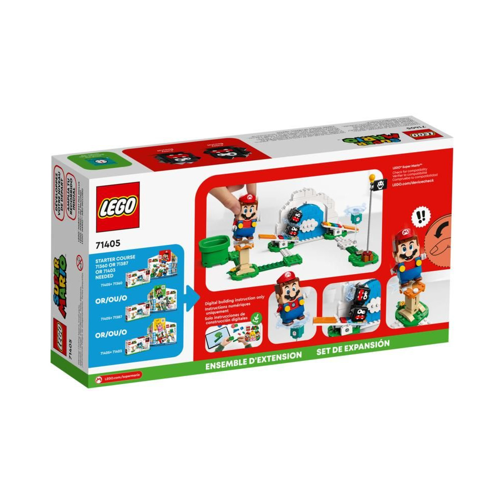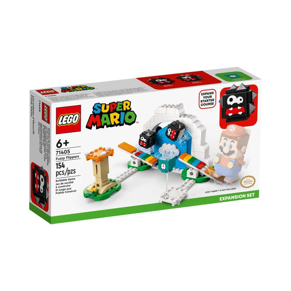 - A Super Mario™ videojátékok kihívást jelentő akadálya, a Fuzzy and Fins 71405 bővítő készlet lehetővé teszi a gyerekek számára, hogy még több kihívást adjanak a LEGO® Super Mario™ játékpályákhoz.
