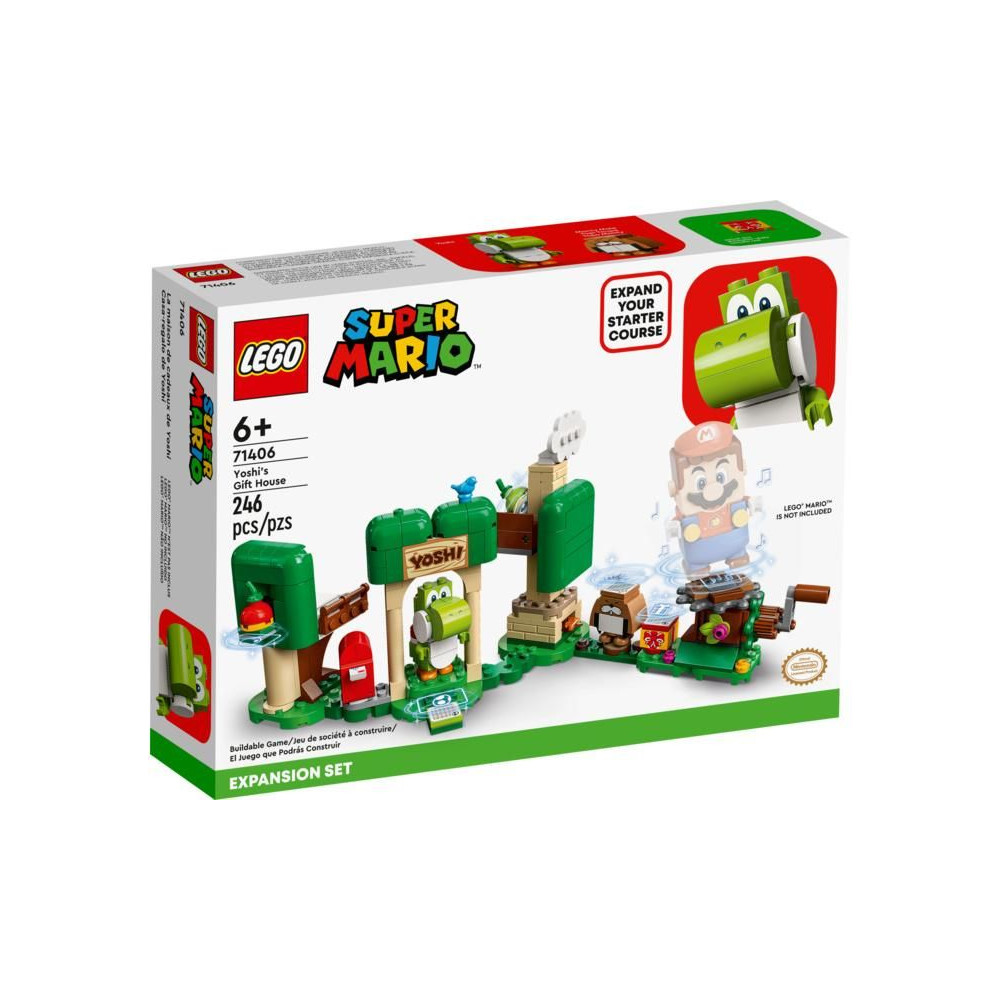 - Welcome to Yoshi's House of Treats (71406) - ez az ikonikus Yoshi karaktert ábrázoló készlet bővítő kezdő készletként szolgál, és lehetővé teszi a gyerekek számára, hogy új LEGO® Super Mario™ játékszinteket építsenek.
