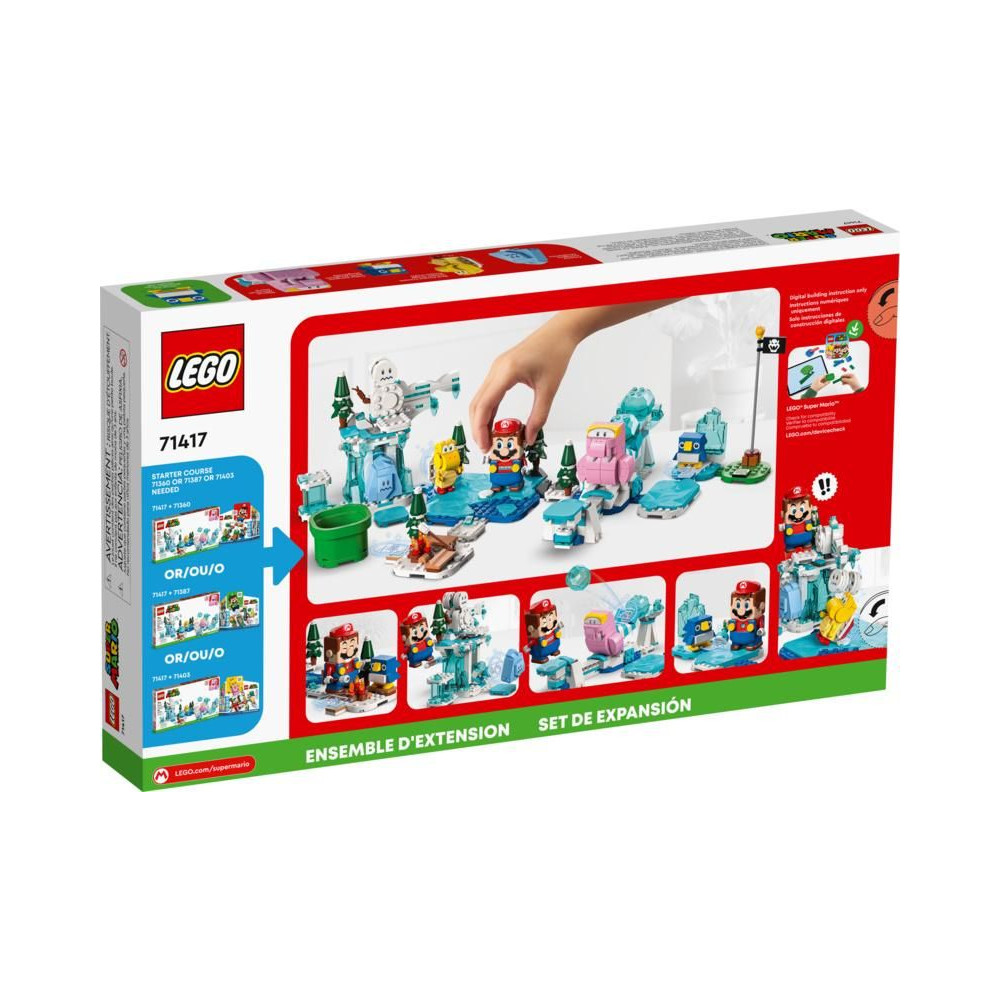 A gyerekek egy izgalmas jeges szinttel bővíthetik LEGO® Super Mario™ világukat a 4 Super Mario™ figurát tartalmazó Snow Adventure with Fliprus bővítő készlettel (71417). A játékosok digitális érméket gyűjthetnek, ha segítenek a LEGO® Mario™, LEGO® Luigi™ vagy LEGO® Peach™ figuráknak (nem tartozék) legyőzni Red Koopa Troopát, Freezie-t és Fliprust. Emellett korcsolyázhatnak a "jégen", melegedhetnek a "tűz" mellett, és rejtett gyümölcsöket adhatnak ajándékba a kis pingvinnek. (Megjegyzés: A játékhoz szükséges a 71360, 71387 vagy 71403 kezdő készlet.)