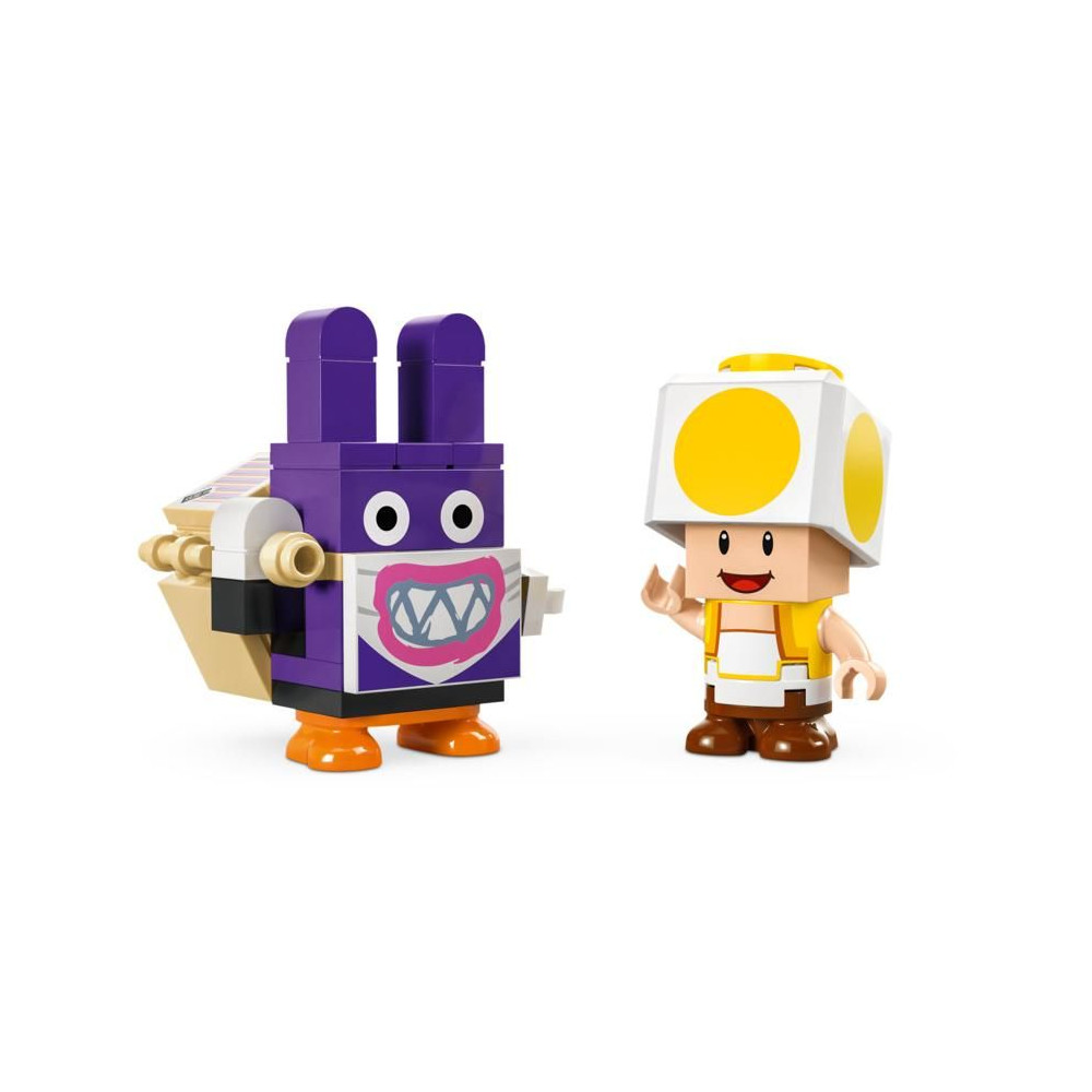 - 2 figura a Super Mario™ téglavilágából - A sárga Varangy és Nabbit a mancsában tarthat kiegészítőket, Nabbit pedig egy építhető hátizsákkal büszkélkedhet.