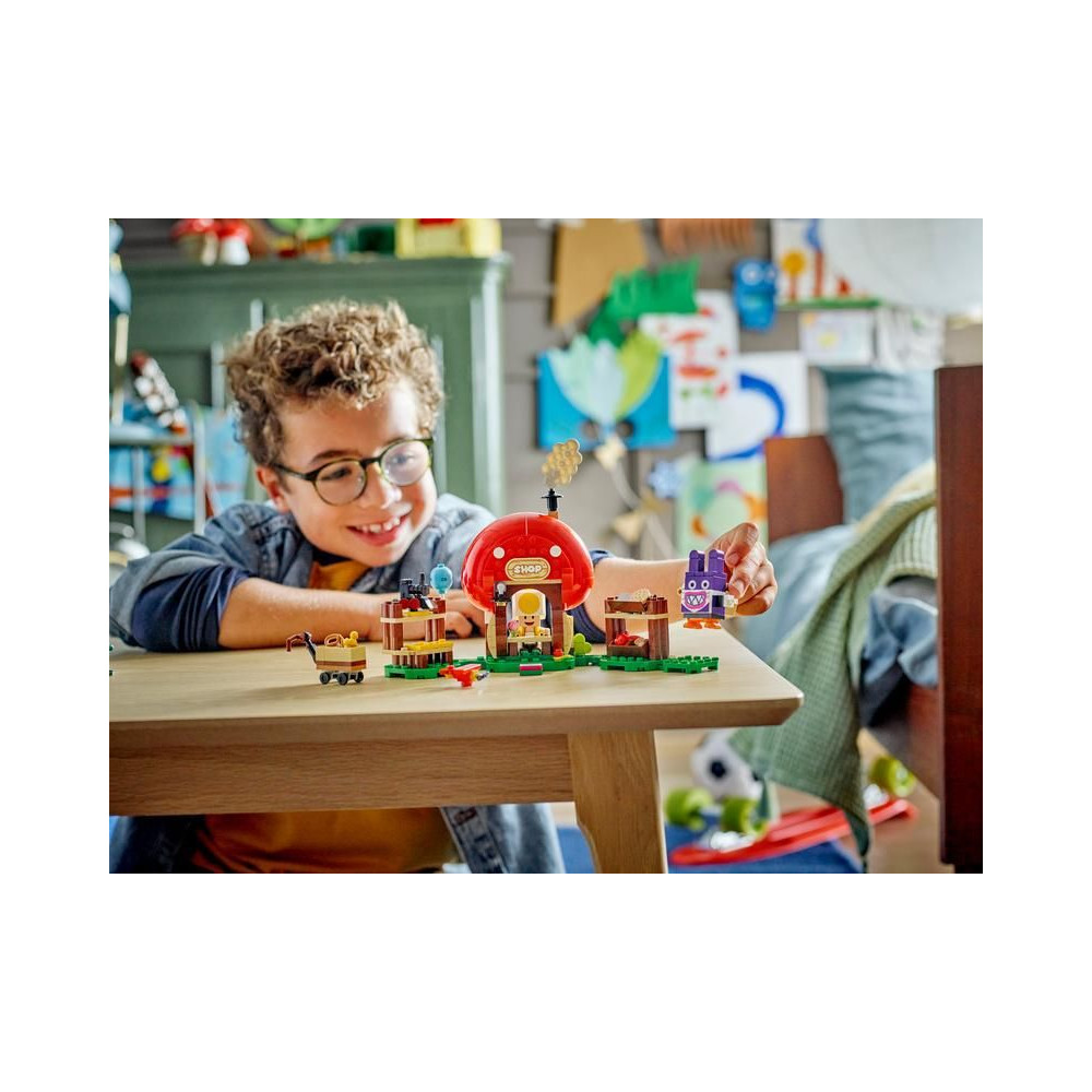 Látogass el Varangy boltjába ebben a gyerekeknek készült LEGO® Super Mario™ készletben. Van benne egy Nabbit figura, egy bevásárlókocsi és sok más részlet.