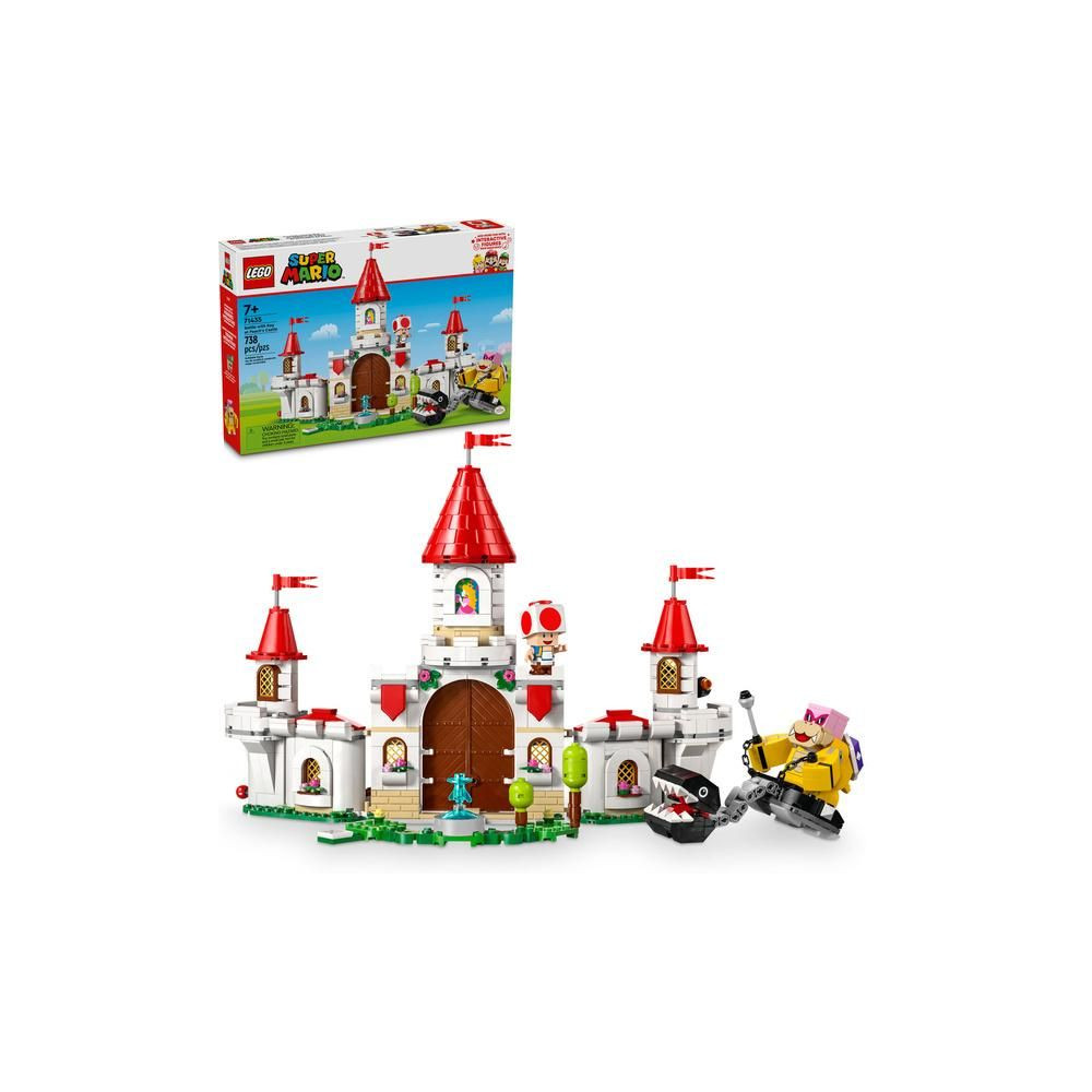 A LEGO® Super Mario™ (71435) Battle with Roy at Castle Peach játékkal a gyerekek órákon át élvezhetik a híres Super Mario™ helyszín felfedezését, harcát és a történetek újrajátszását. Ez a Nintendo® karaktereket tartalmazó készlet nagyszerű ajándék 7 éves és idősebb lányoknak, fiúknak és a videojátékok szerelmeseinek, és tartalmazza a hercegnő kastélyának LEGO téglamodelljét, amely kinyitható, hogy a játékkal töltött kalandok során könnyen hozzáférhess. Könnyen újjáépíthető falakkal rendelkezik, amelyek ostrom közben szétesnek, valamint toronnyal, katapulttal, forgó trónnal és szökőkúttal a kertben. A csomagban 3 LEGO Super Mario figura is található: Roy (először szerepel LEGO Super Mario készletben), Chain Chomp és Toad.